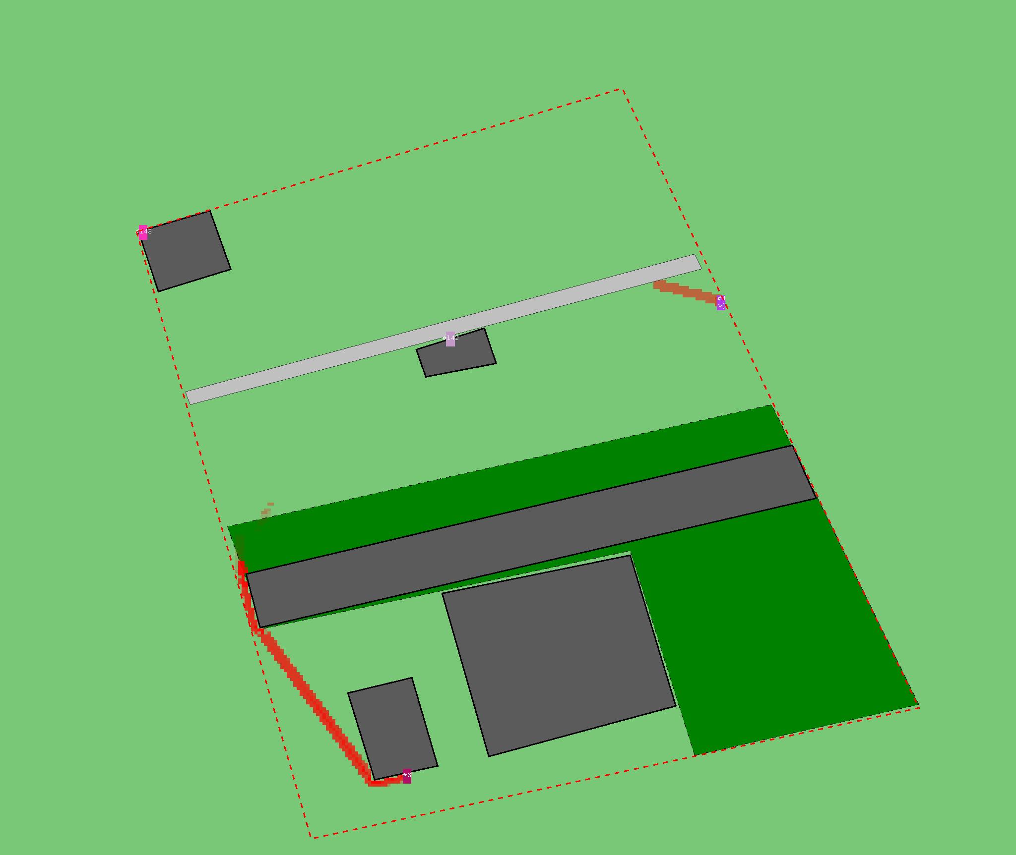 Красным цветом показаны места, где, вероятнее всего, появятся стихийные тропы..