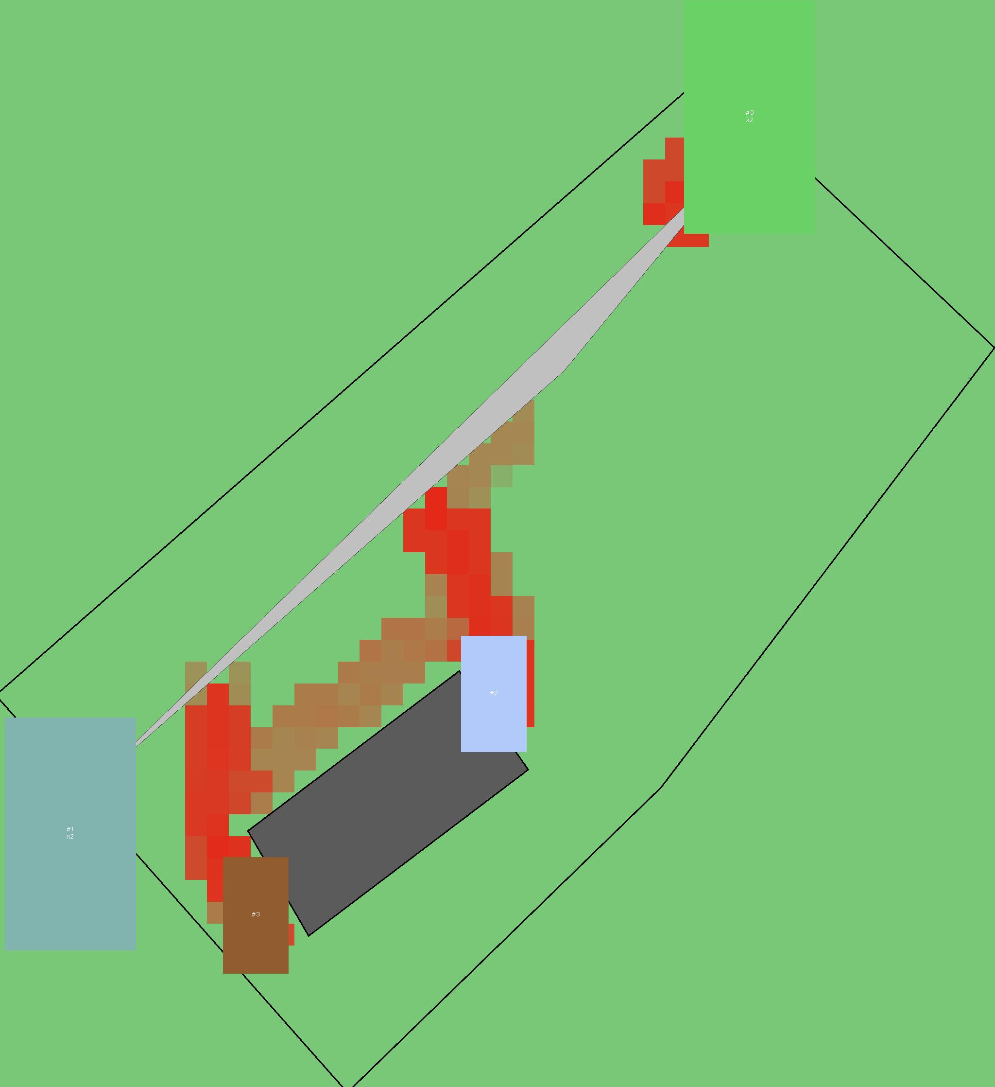 Красным цветом показаны места, где, вероятнее всего, появятся стихийные тропы..