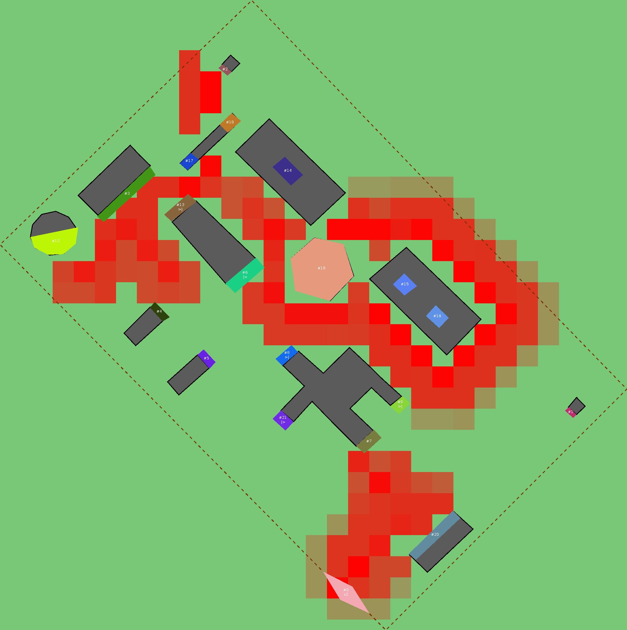 Красным цветом показаны места, где, вероятнее всего, появятся стихийные тропы..