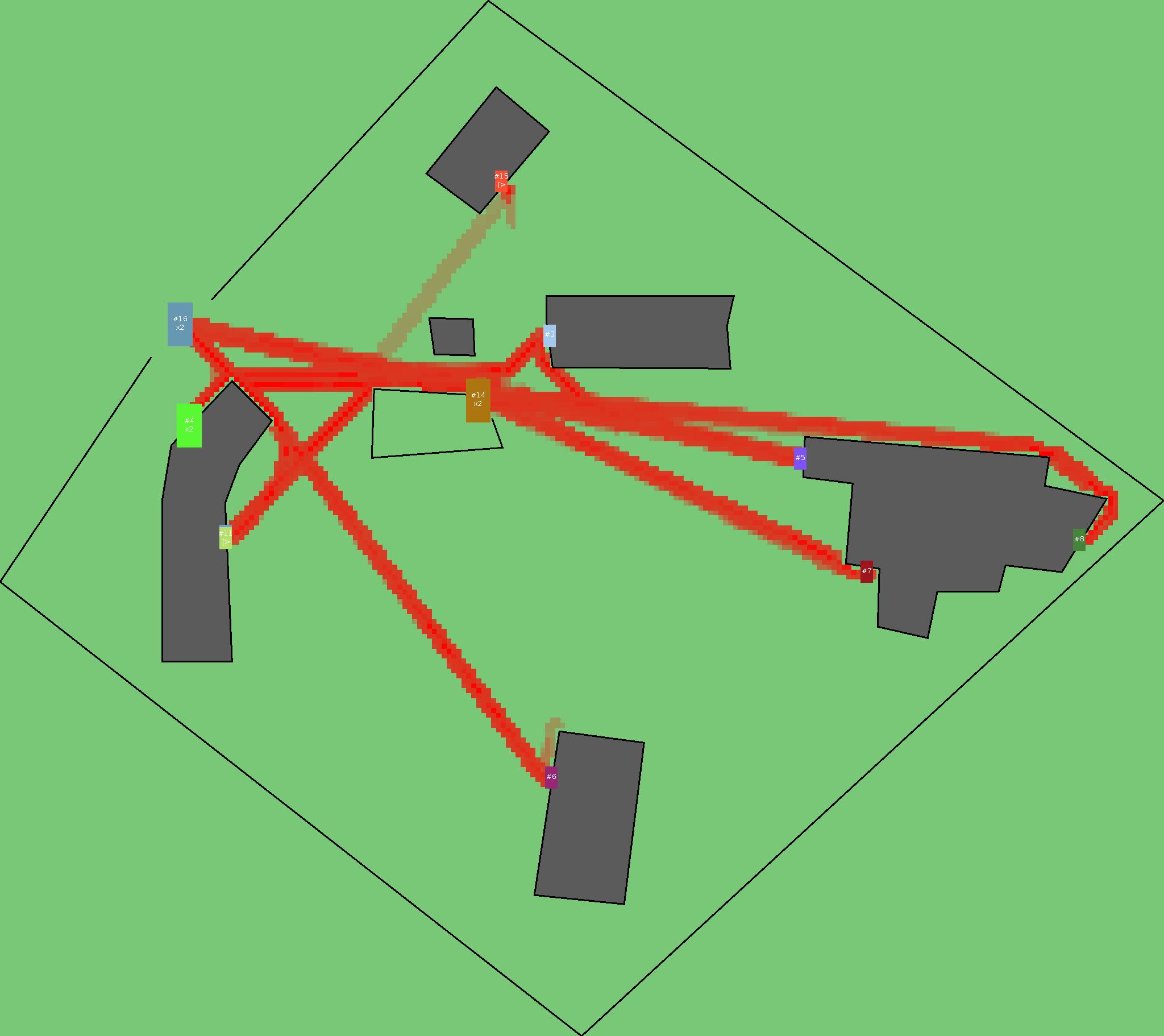 Красным цветом показаны места, где, вероятнее всего, появятся стихийные тропы..