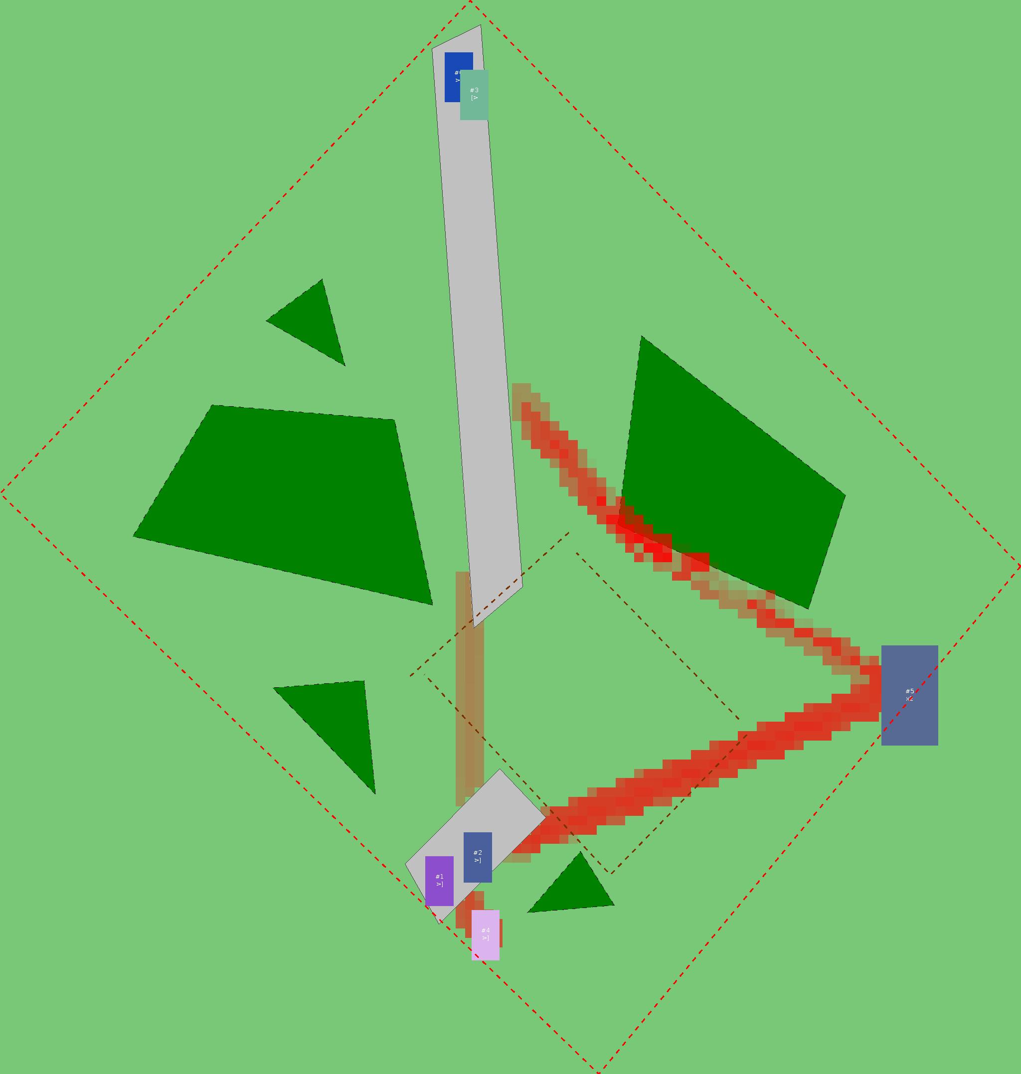 Красным цветом показаны места, где, вероятнее всего, появятся стихийные тропы..