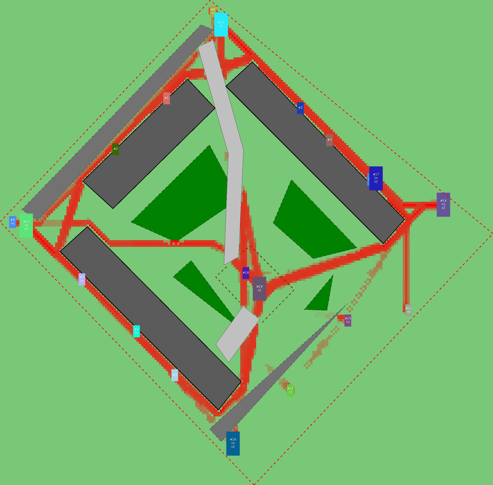 Красным цветом показаны места, где, вероятнее всего, появятся стихийные тропы..