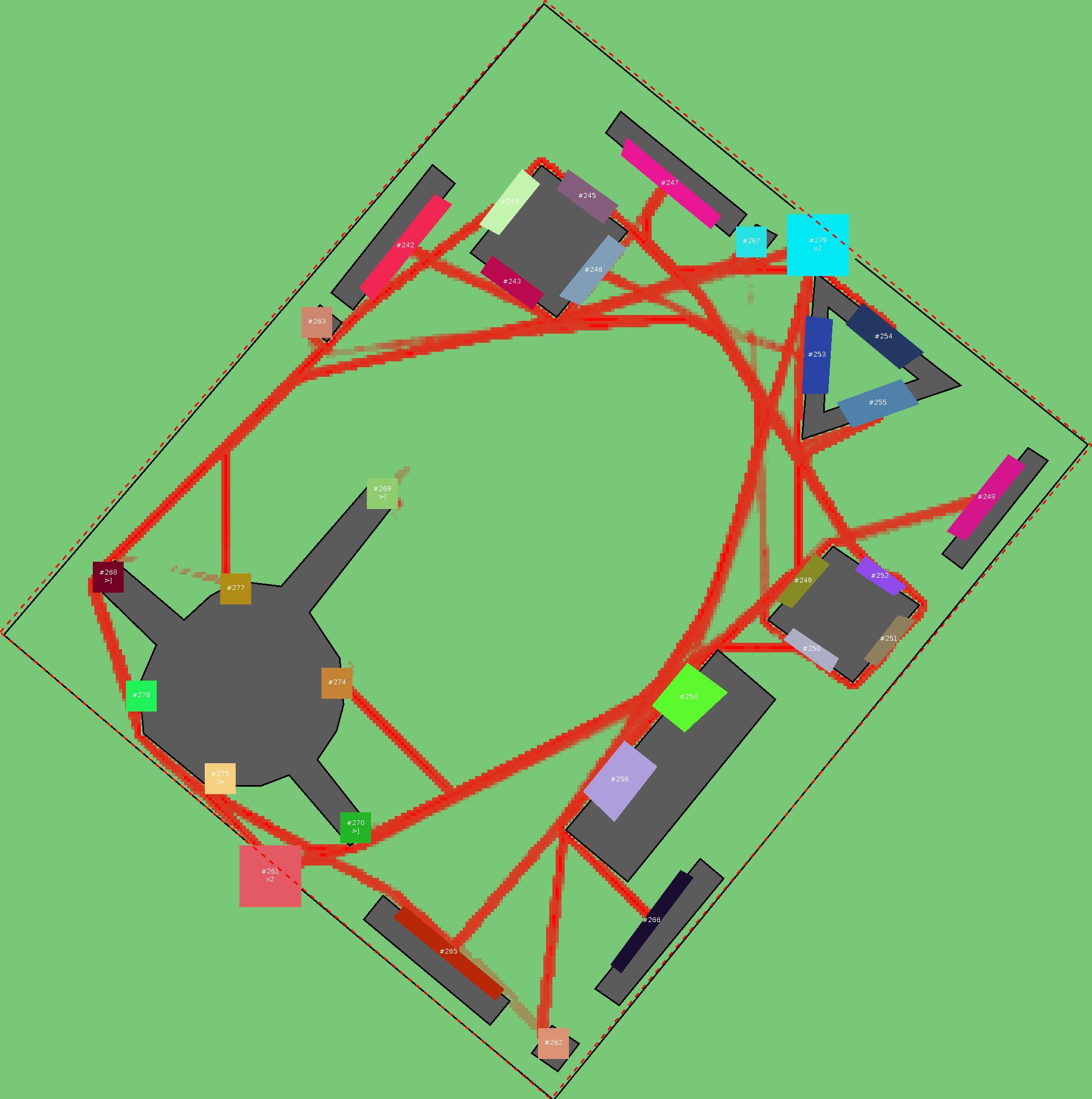 Красным цветом показаны места, где, вероятнее всего, появятся стихийные тропы..