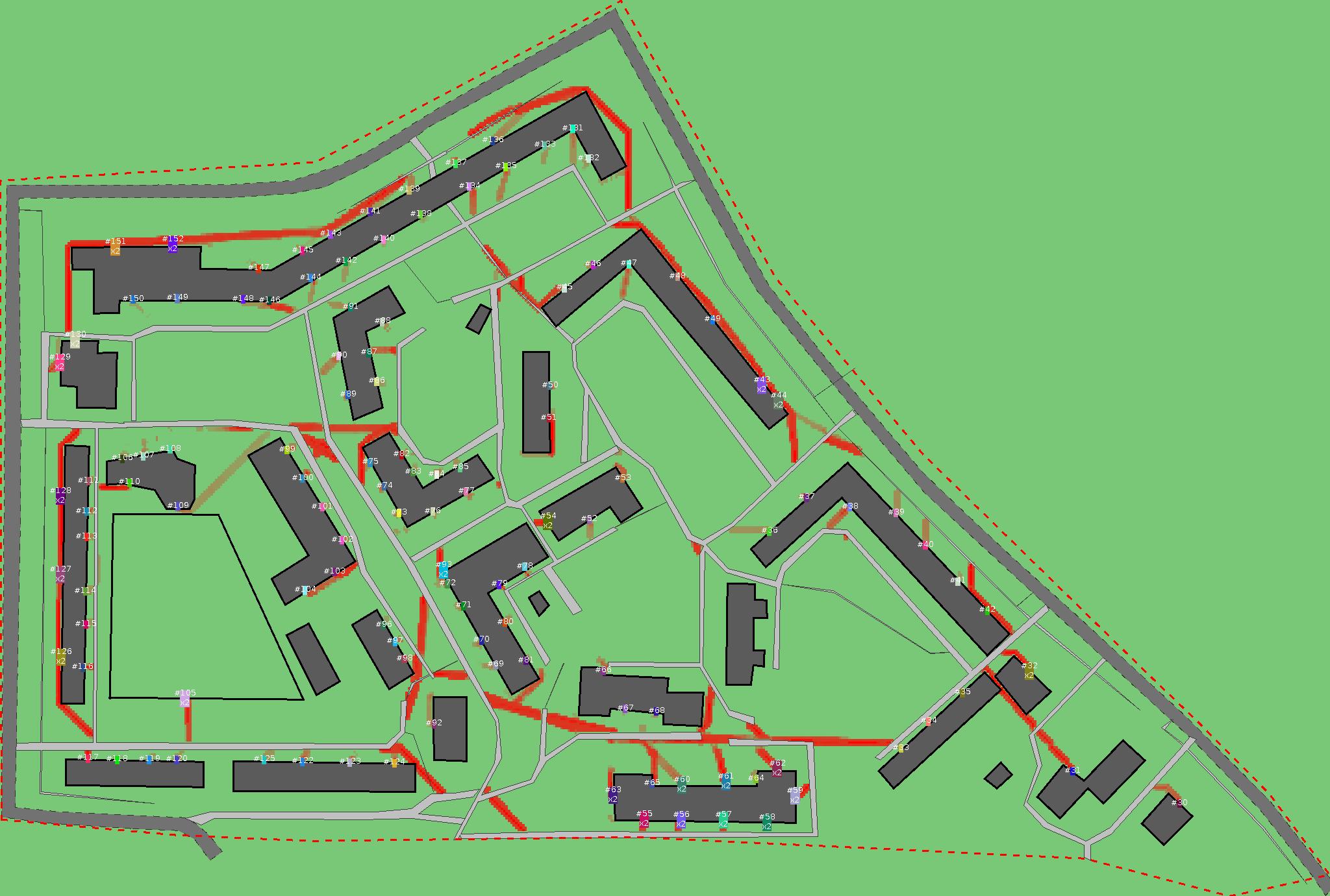 Красным цветом показаны места, где, вероятнее всего, появятся стихийные тропы..