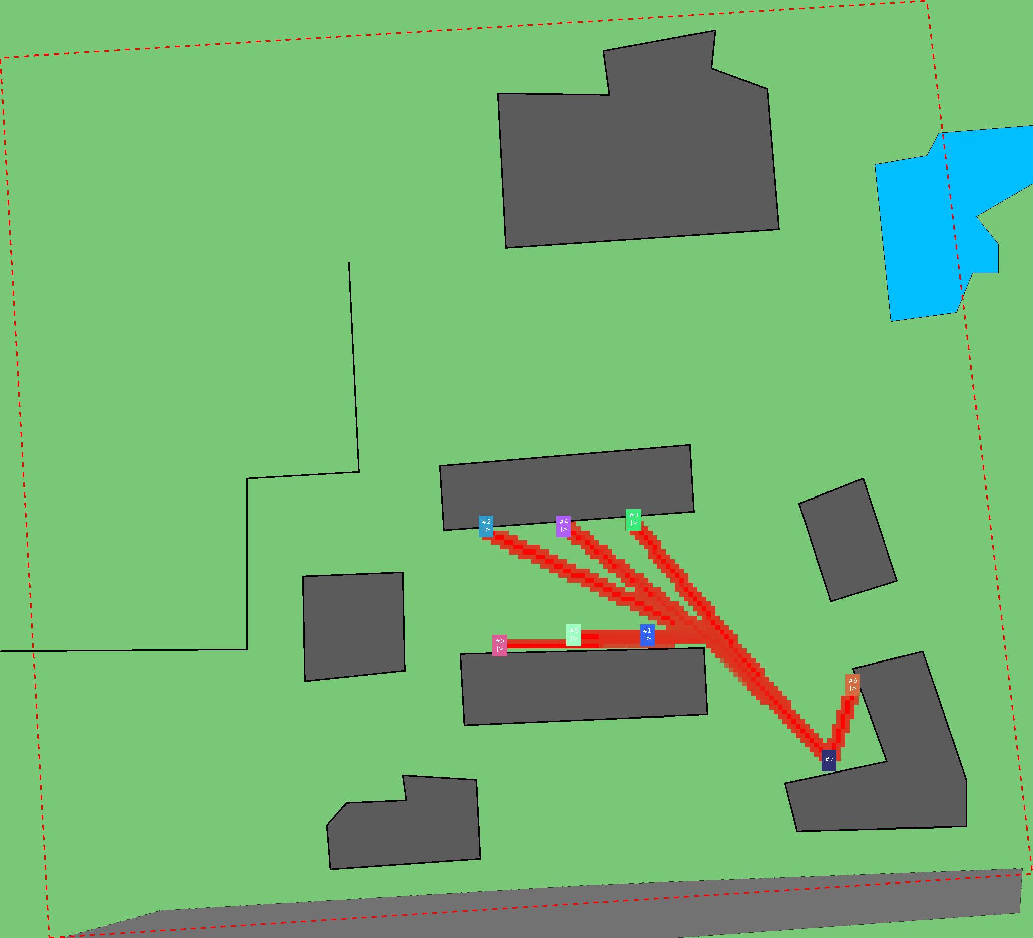 Красным цветом показаны места, где, вероятнее всего, появятся стихийные тропы..