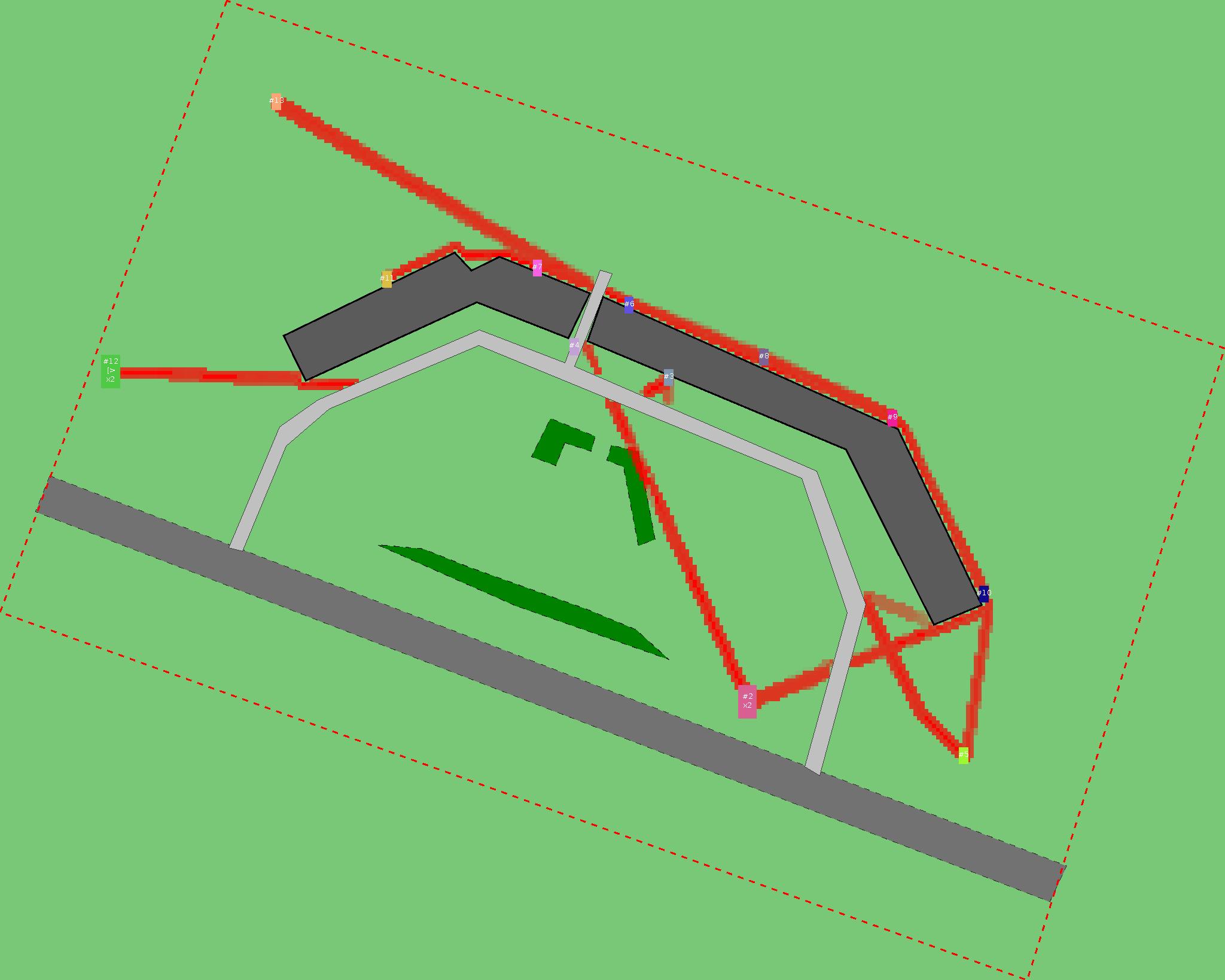 Красным цветом показаны места, где, вероятнее всего, появятся стихийные тропы..