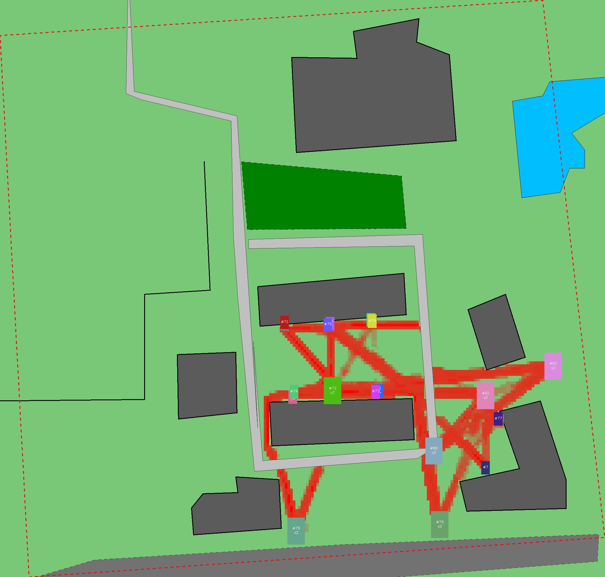 Красным цветом показаны места, где, вероятнее всего, появятся стихийные тропы..