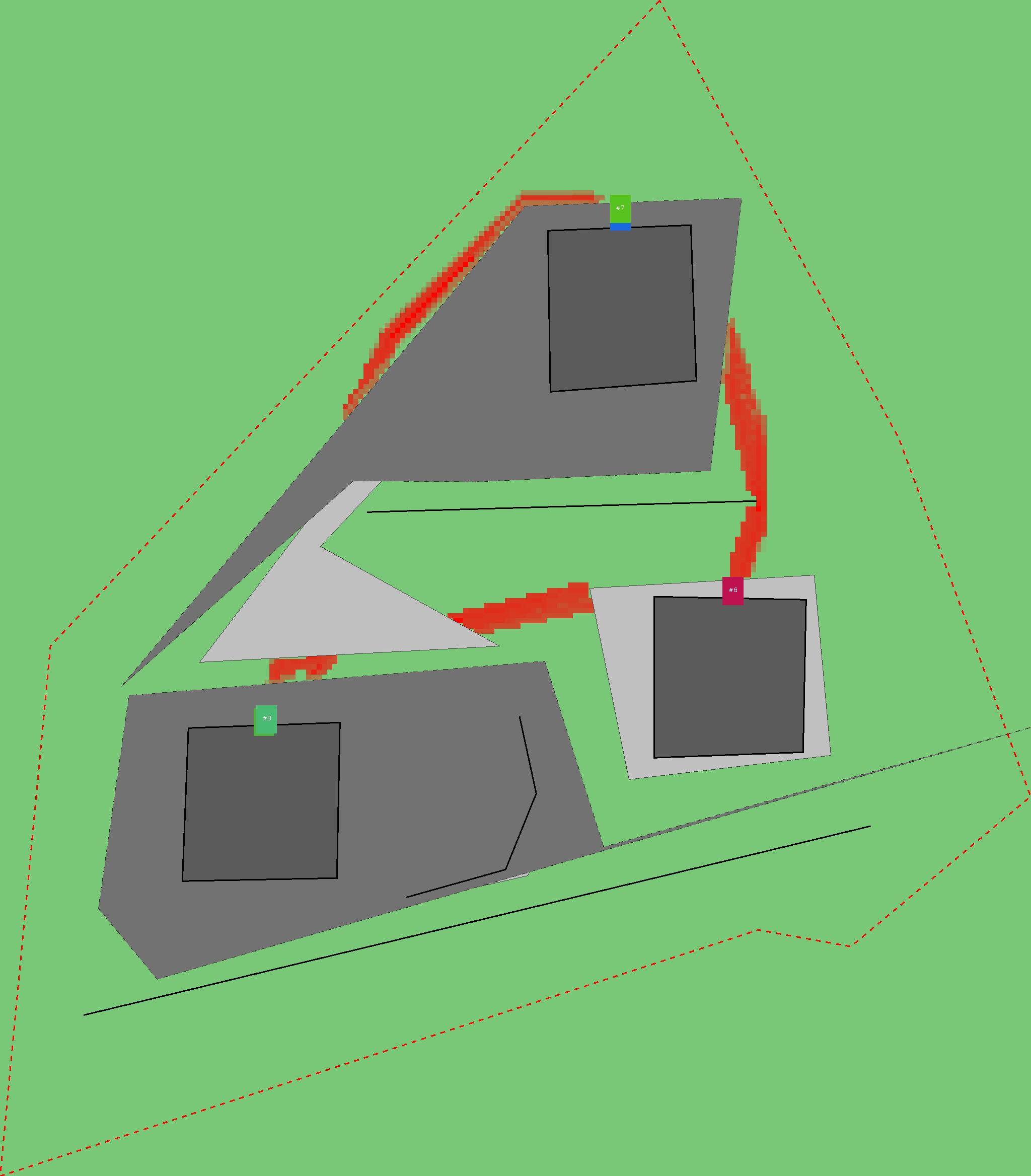 Красным цветом показаны места, где, вероятнее всего, появятся стихийные тропы..