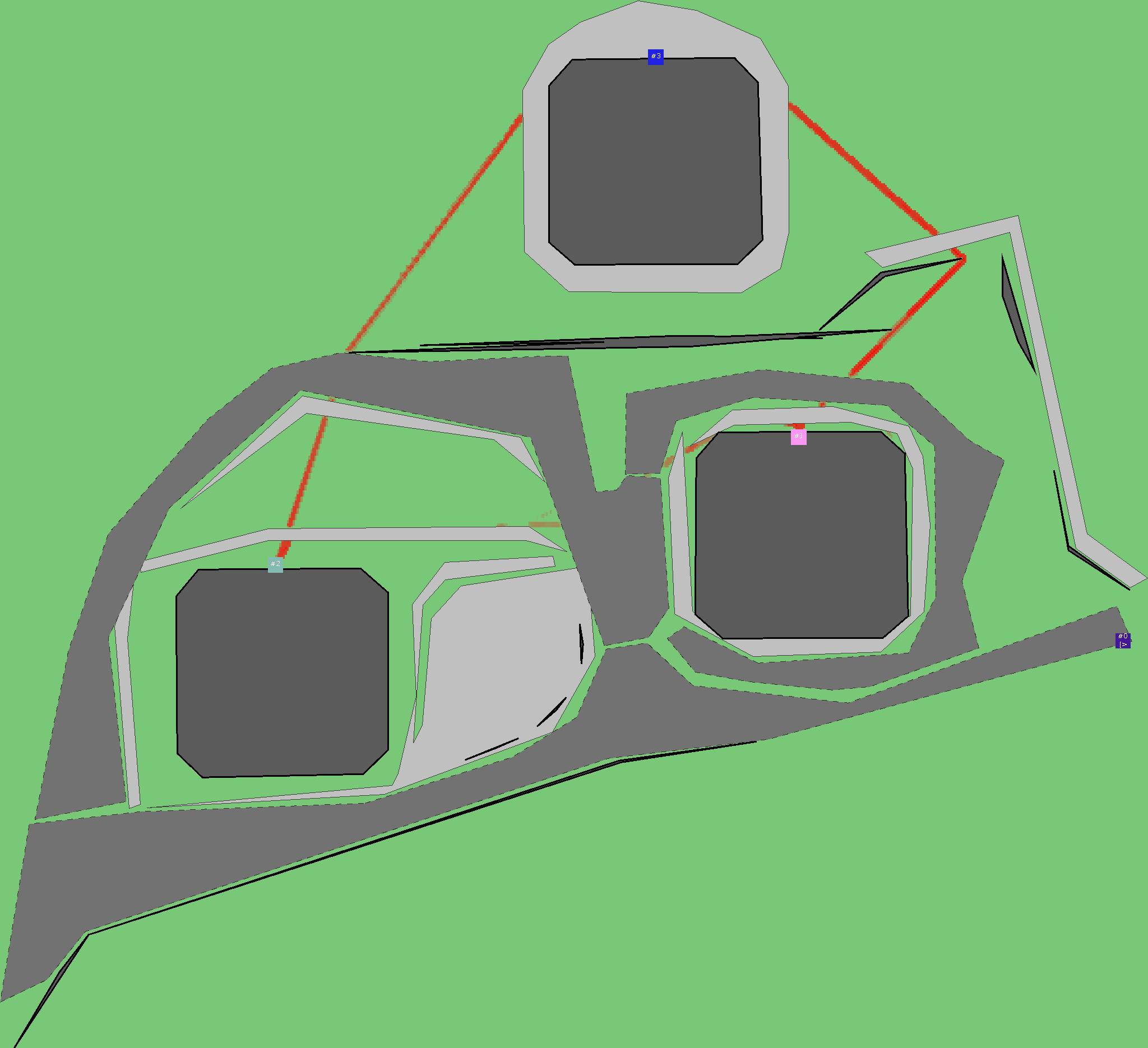 Красным цветом показаны места, где, вероятнее всего, появятся стихийные тропы..