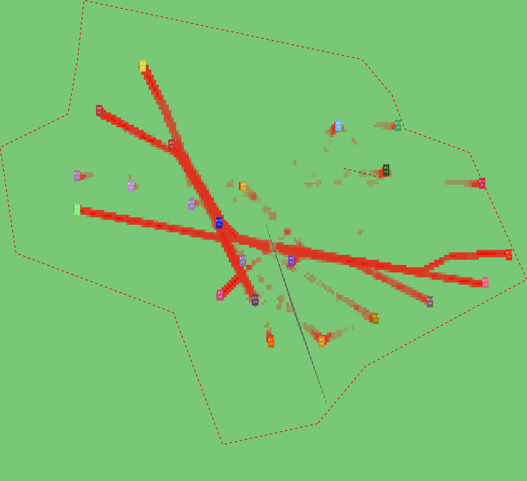Красным цветом показаны места, где, вероятнее всего, появятся стихийные тропы..