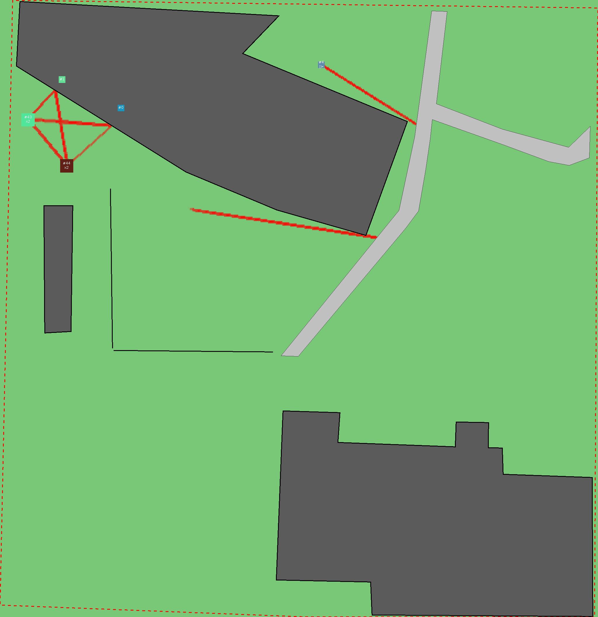 Красным цветом показаны места, где, вероятнее всего, появятся стихийные тропы..