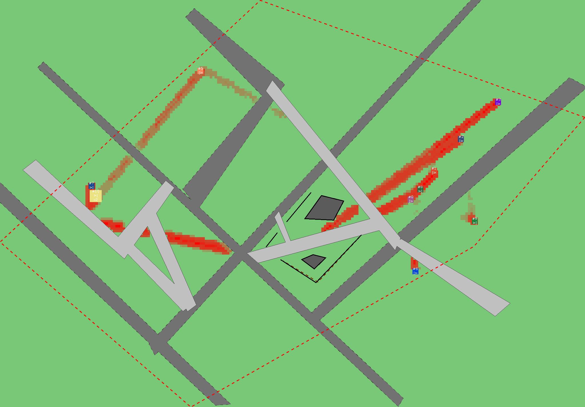 Красным цветом показаны места, где, вероятнее всего, появятся стихийные тропы..
