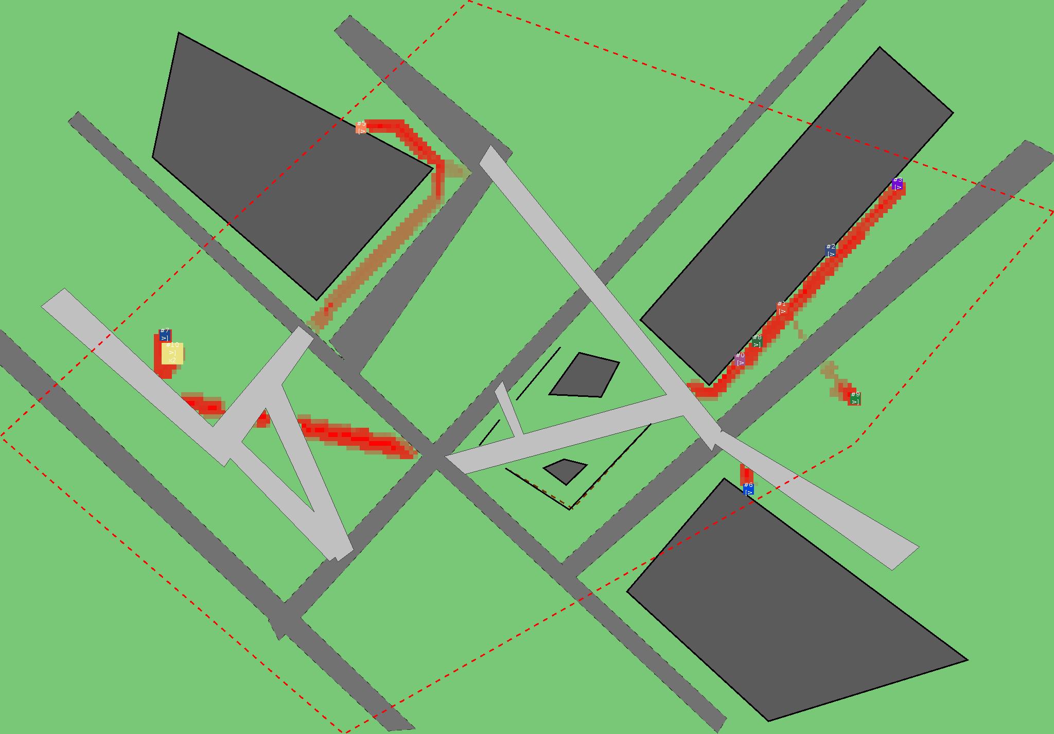 Красным цветом показаны места, где, вероятнее всего, появятся стихийные тропы..