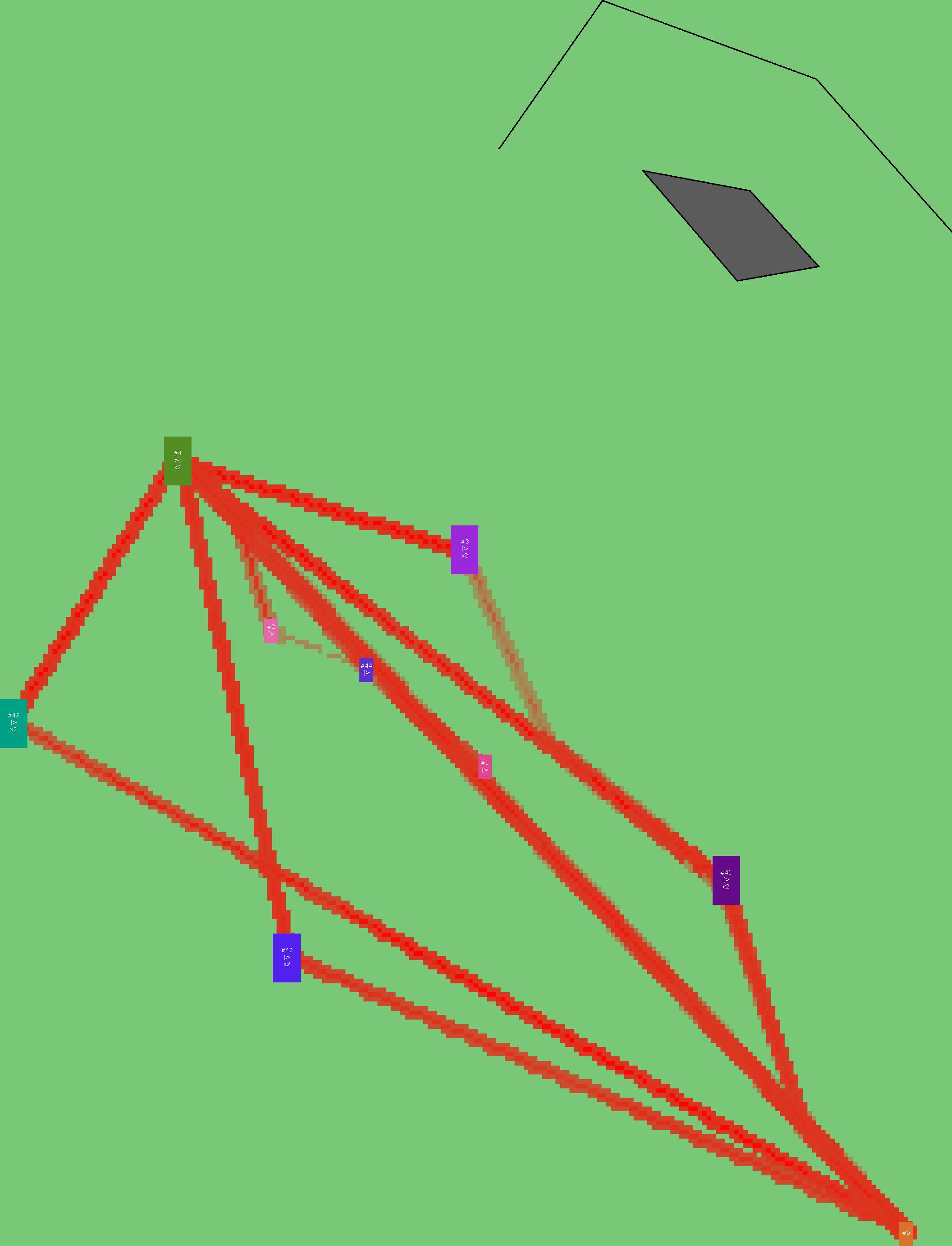Красным цветом показаны места, где, вероятнее всего, появятся стихийные тропы..