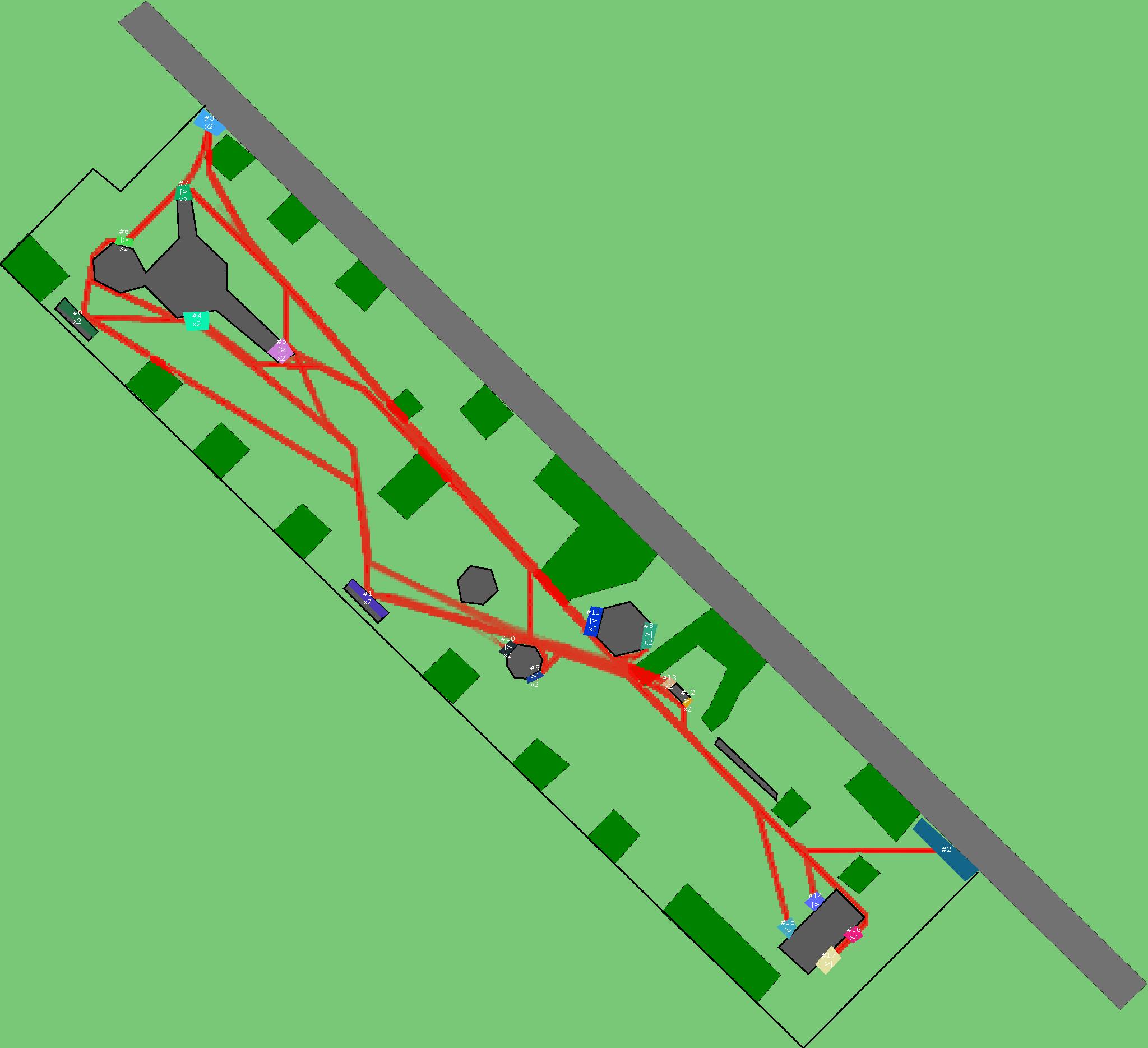 Красным цветом показаны места, где, вероятнее всего, появятся стихийные тропы..