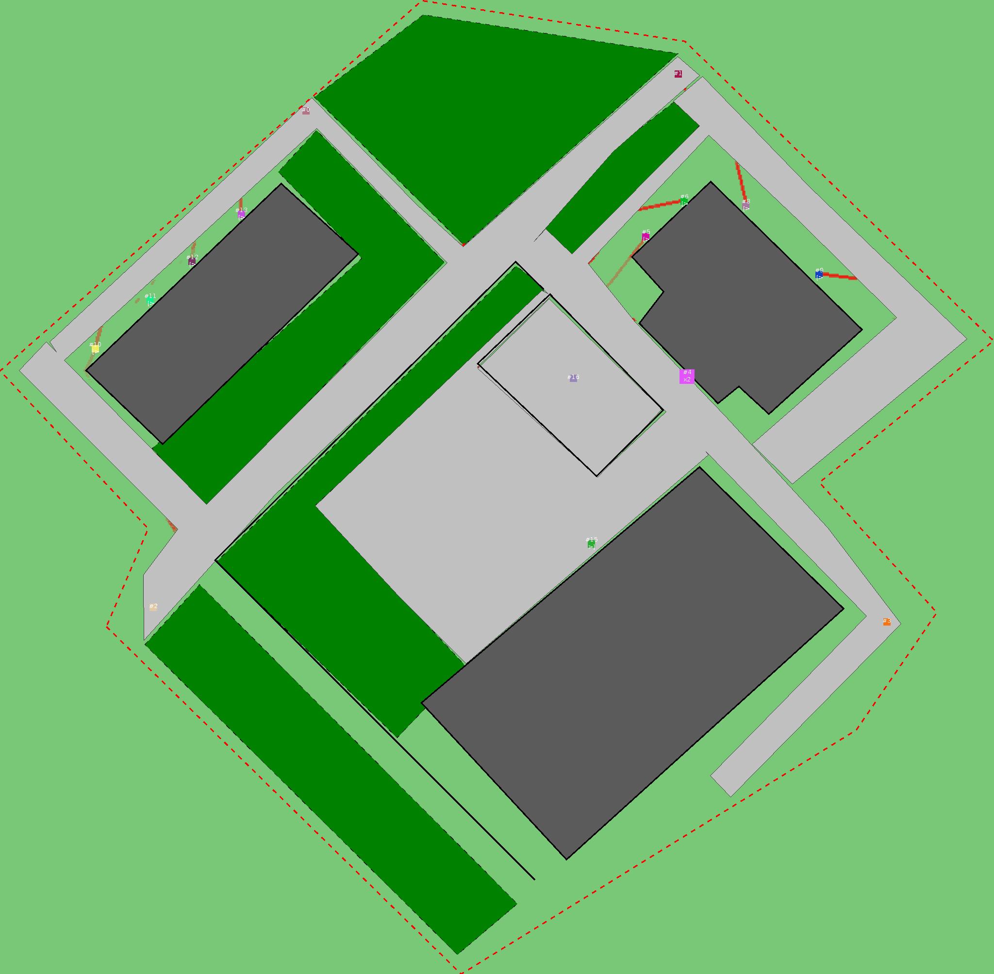 Красным цветом показаны места, где, вероятнее всего, появятся стихийные тропы..