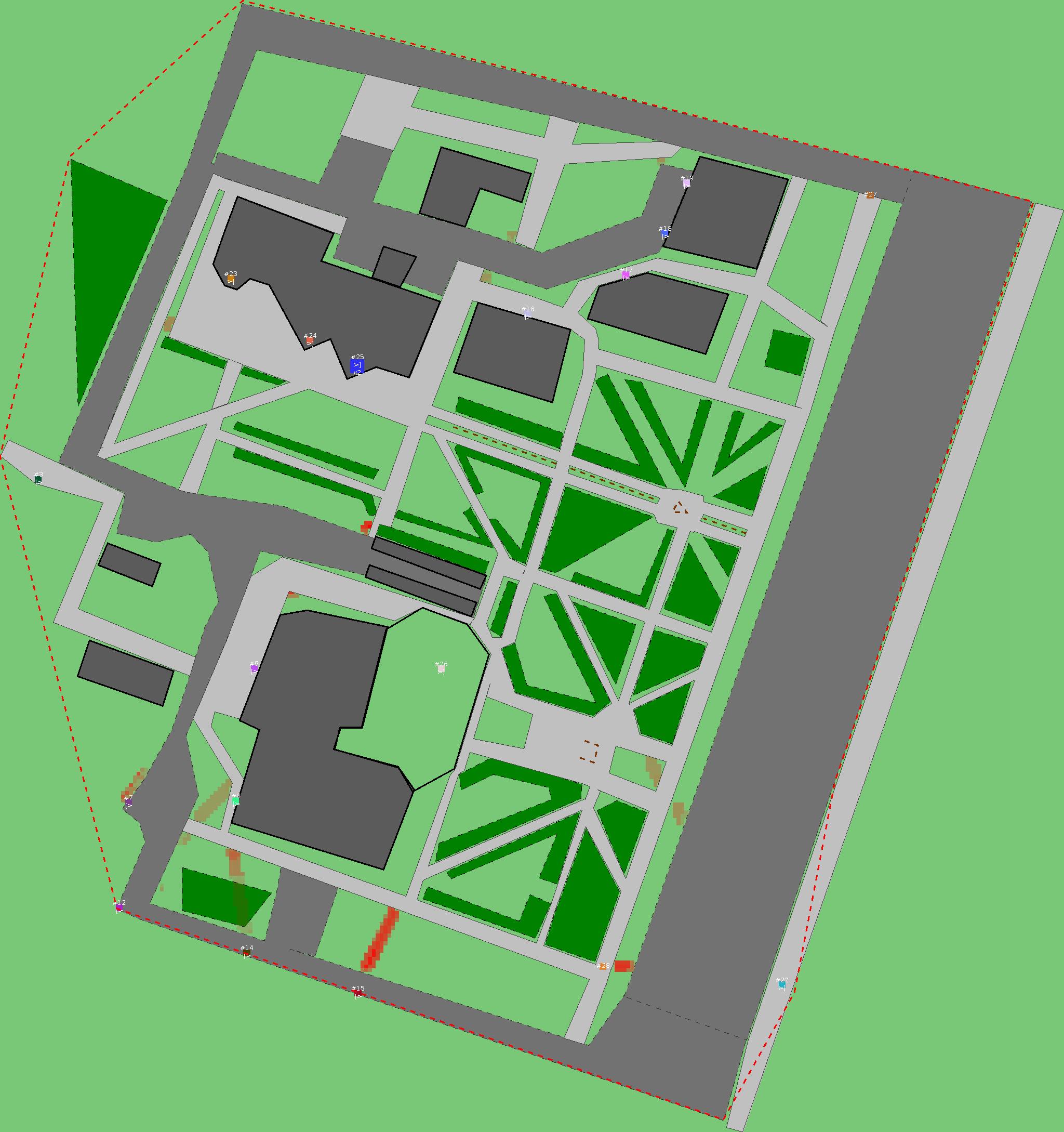 Красным цветом показаны места, где, вероятнее всего, появятся стихийные тропы..
