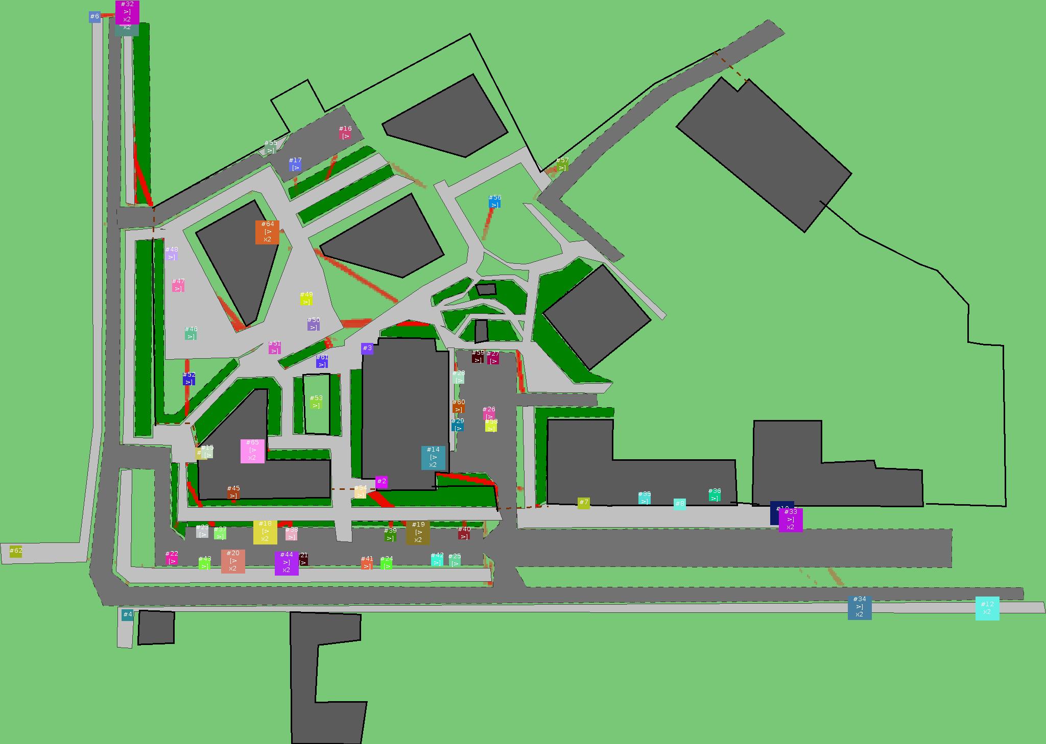 Красным цветом показаны места, где, вероятнее всего, появятся стихийные тропы..