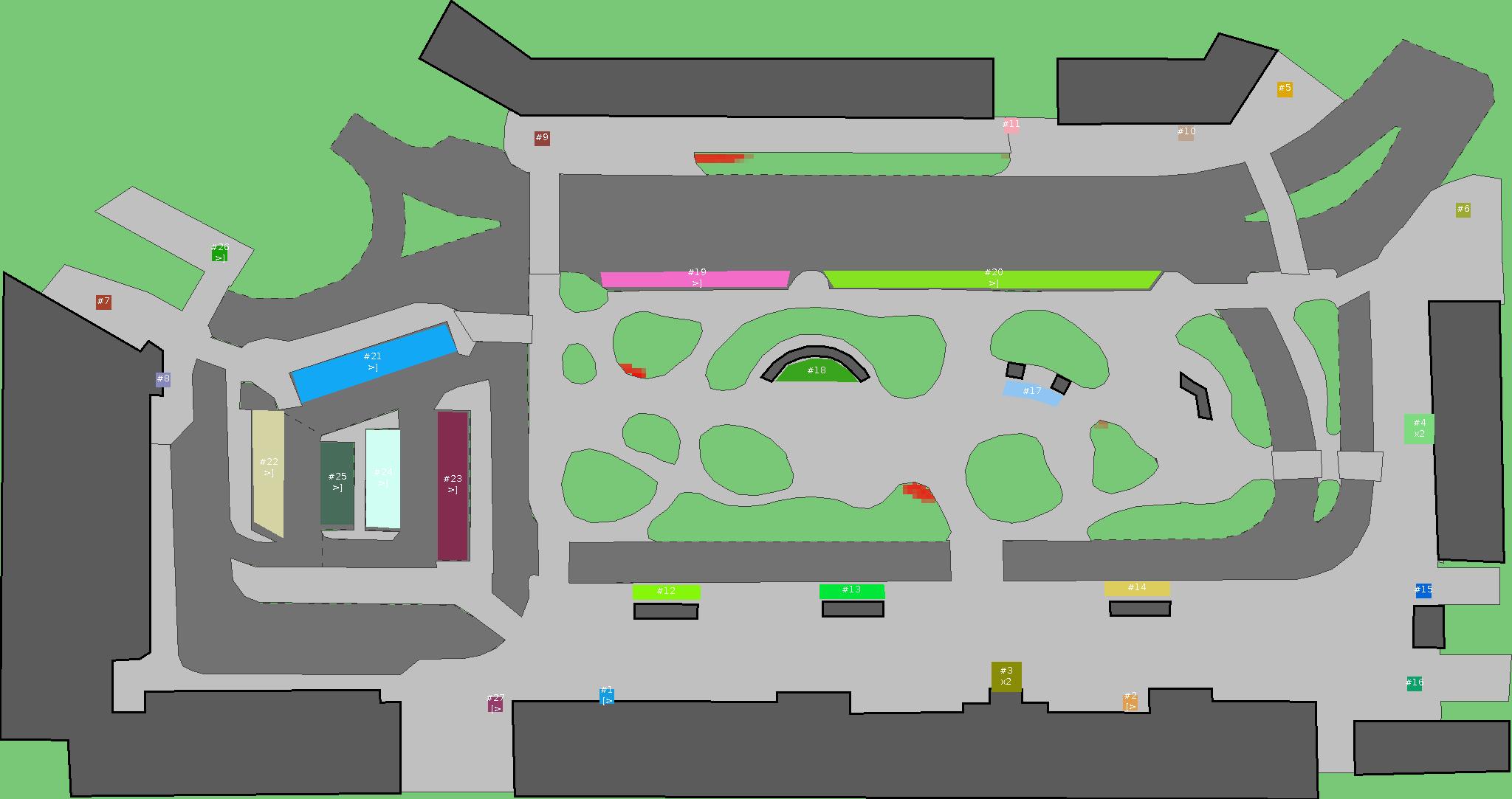 Красным цветом показаны места, где, вероятнее всего, появятся стихийные тропы..