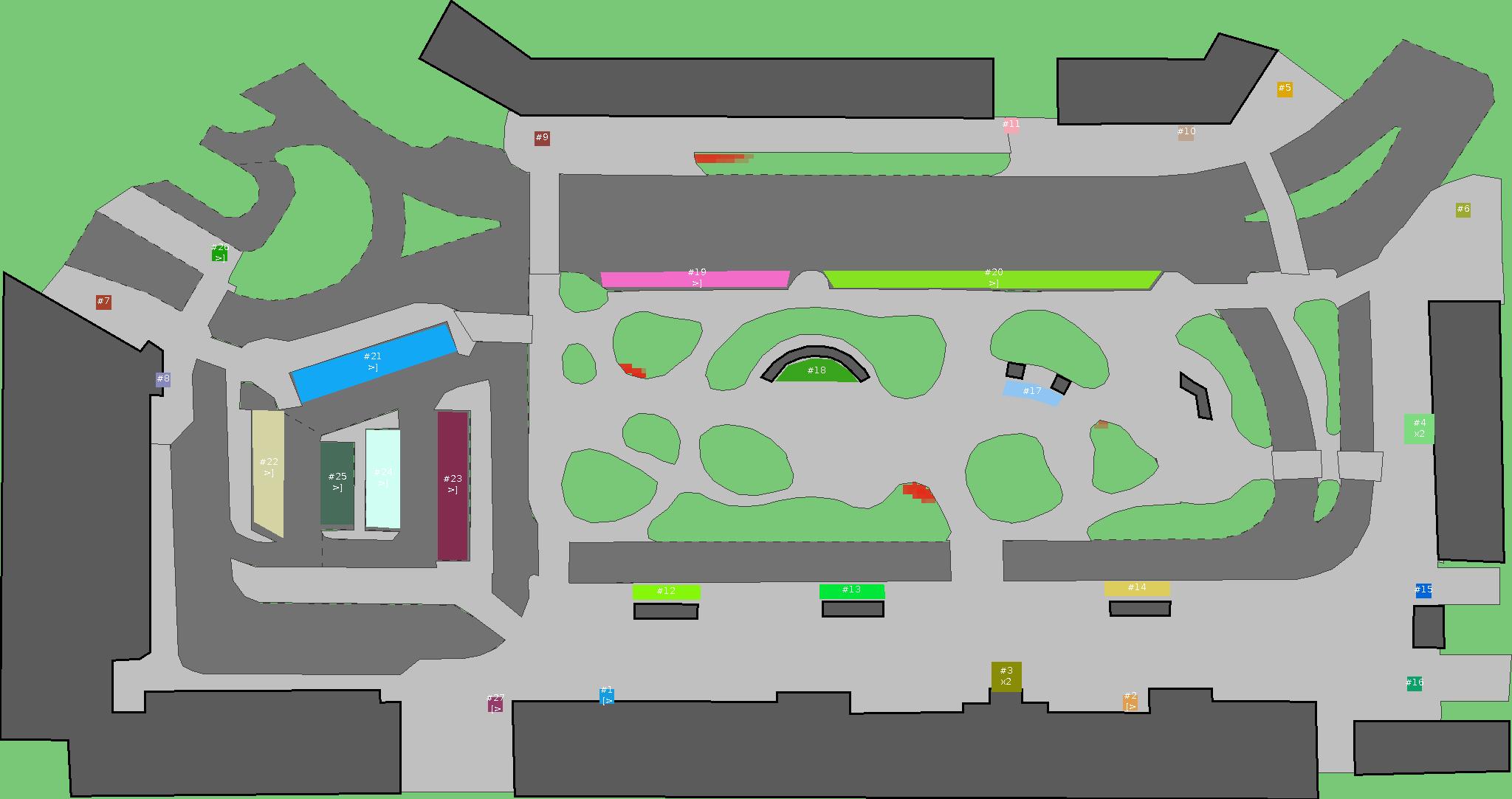 Красным цветом показаны места, где, вероятнее всего, появятся стихийные тропы..