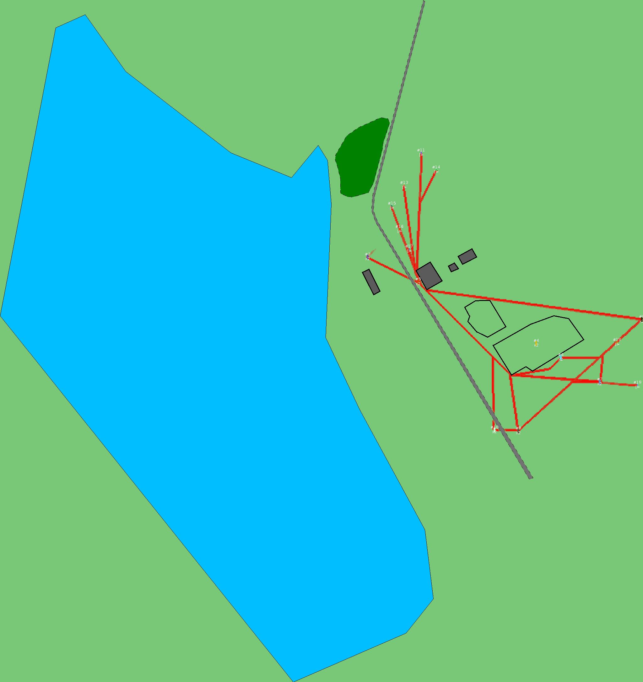 Красным цветом показаны места, где, вероятнее всего, появятся стихийные тропы..