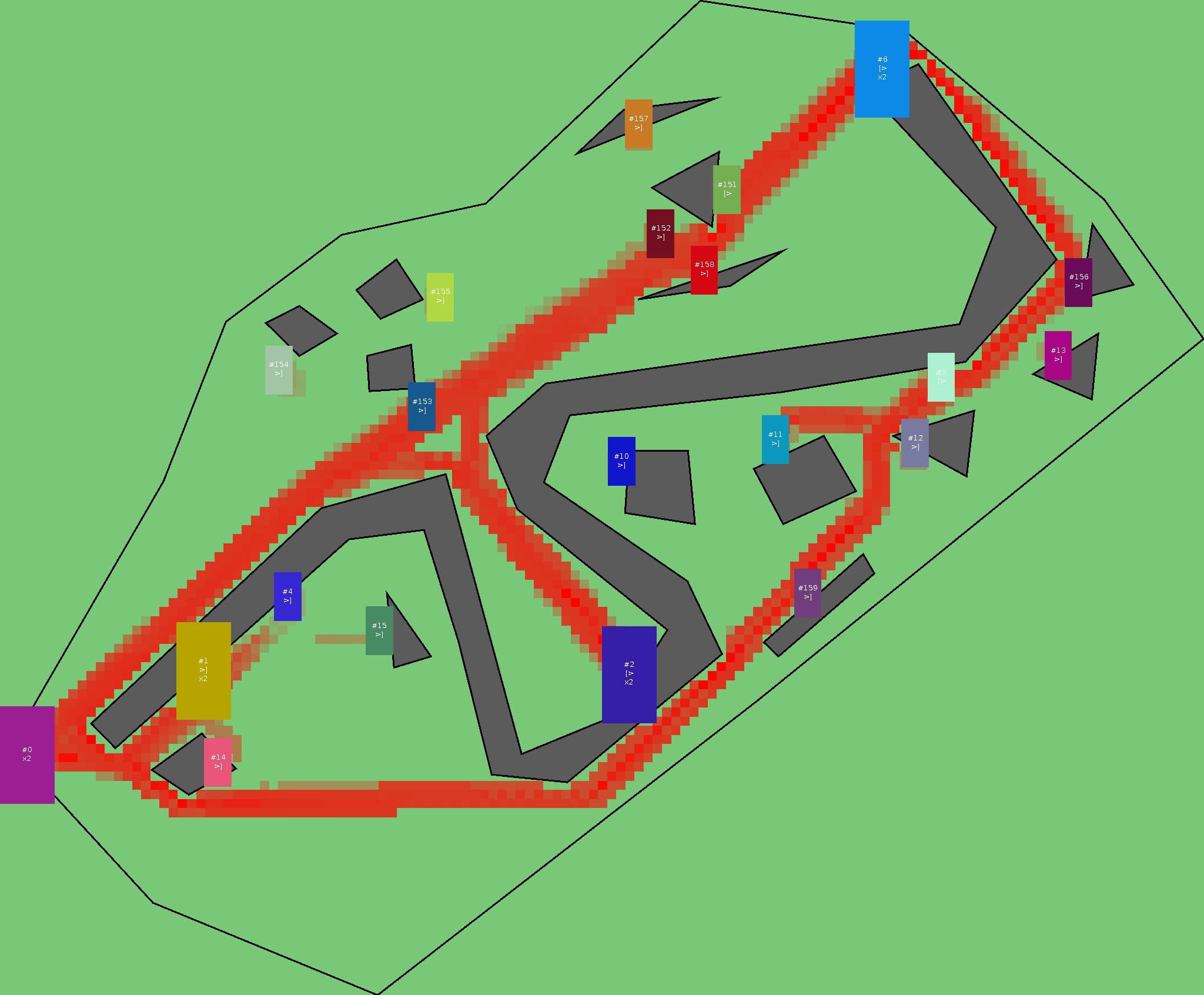 Красным цветом показаны места, где, вероятнее всего, появятся стихийные тропы..