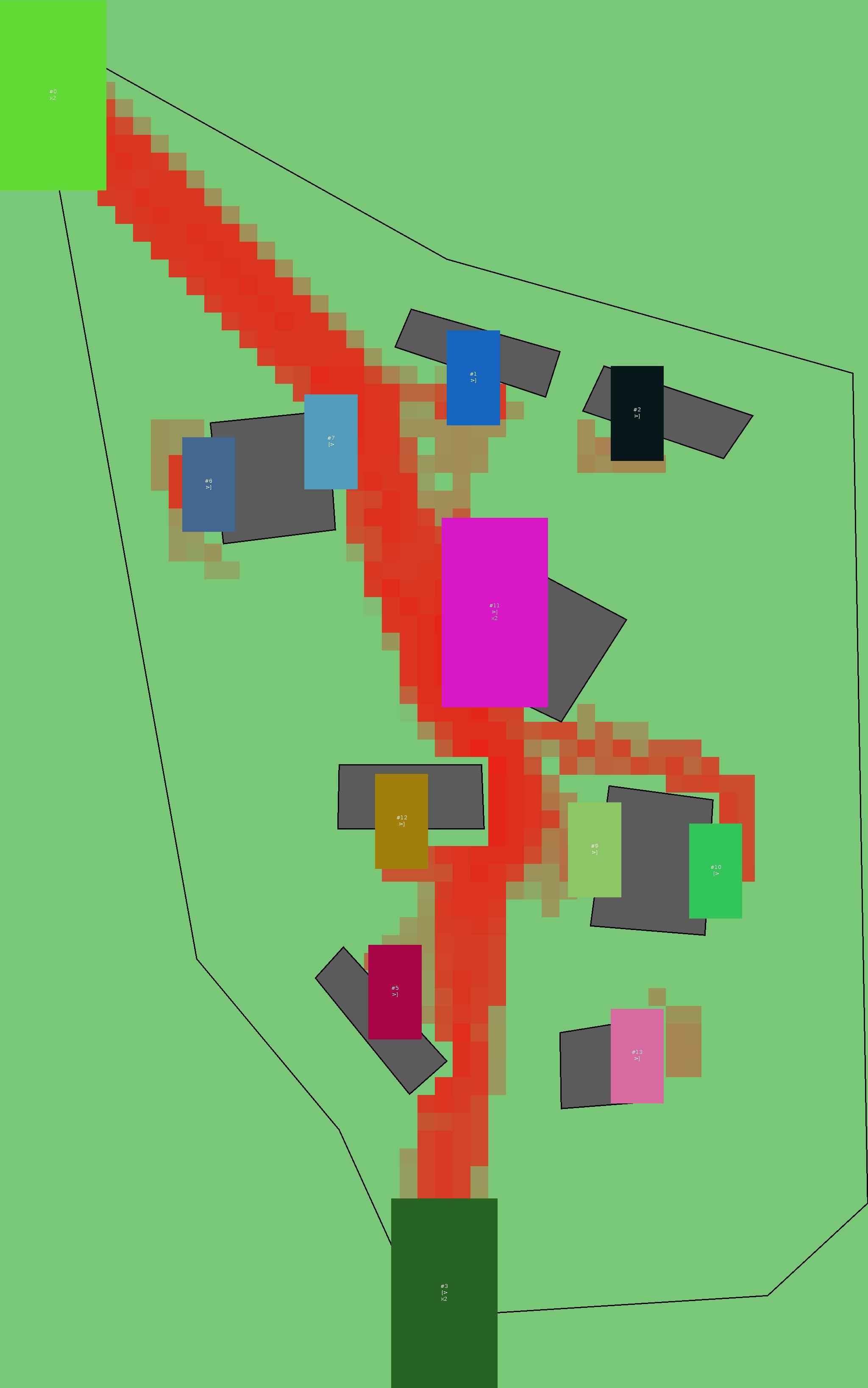 Красным цветом показаны места, где, вероятнее всего, появятся стихийные тропы..