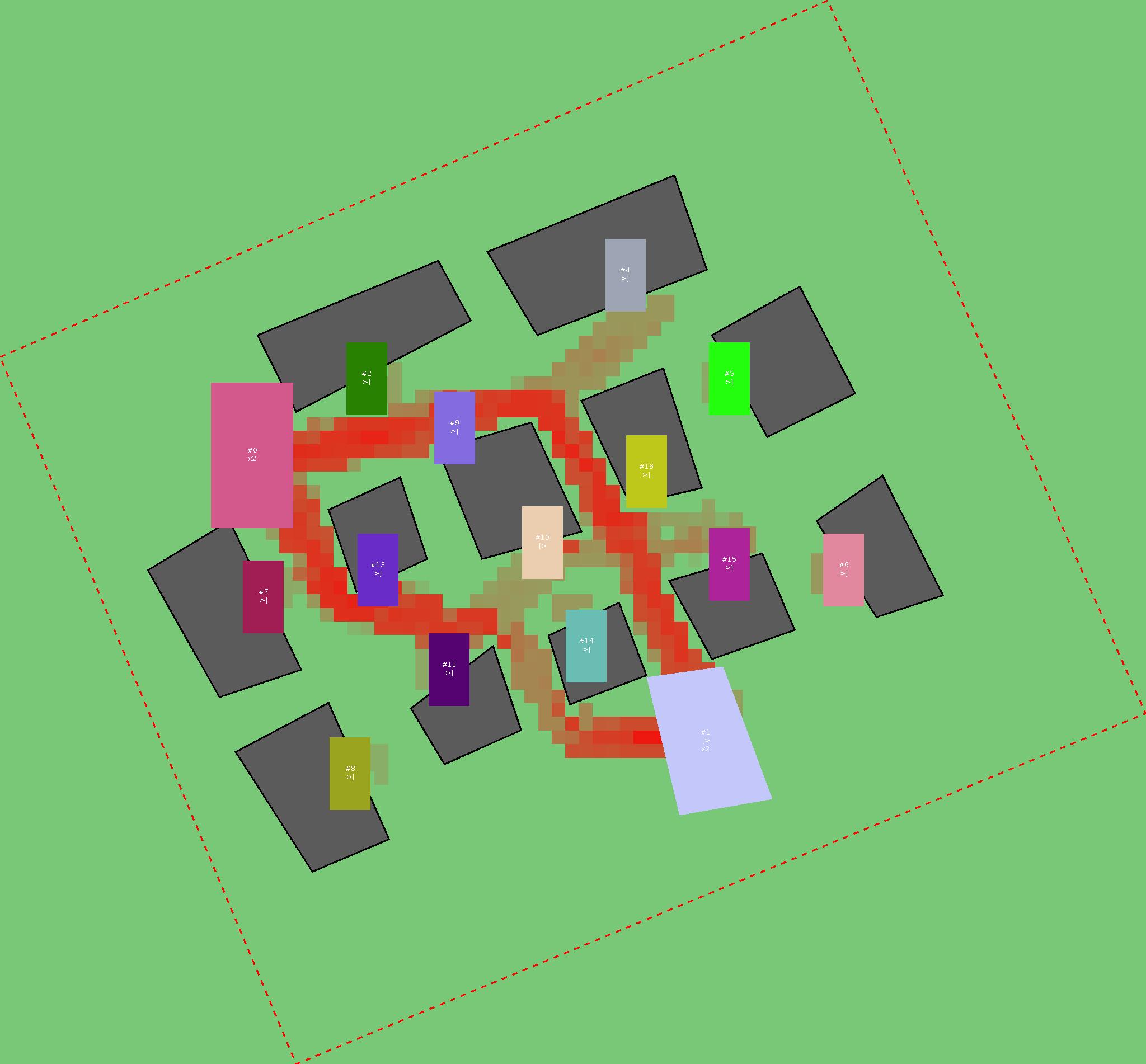 Красным цветом показаны места, где, вероятнее всего, появятся стихийные тропы..