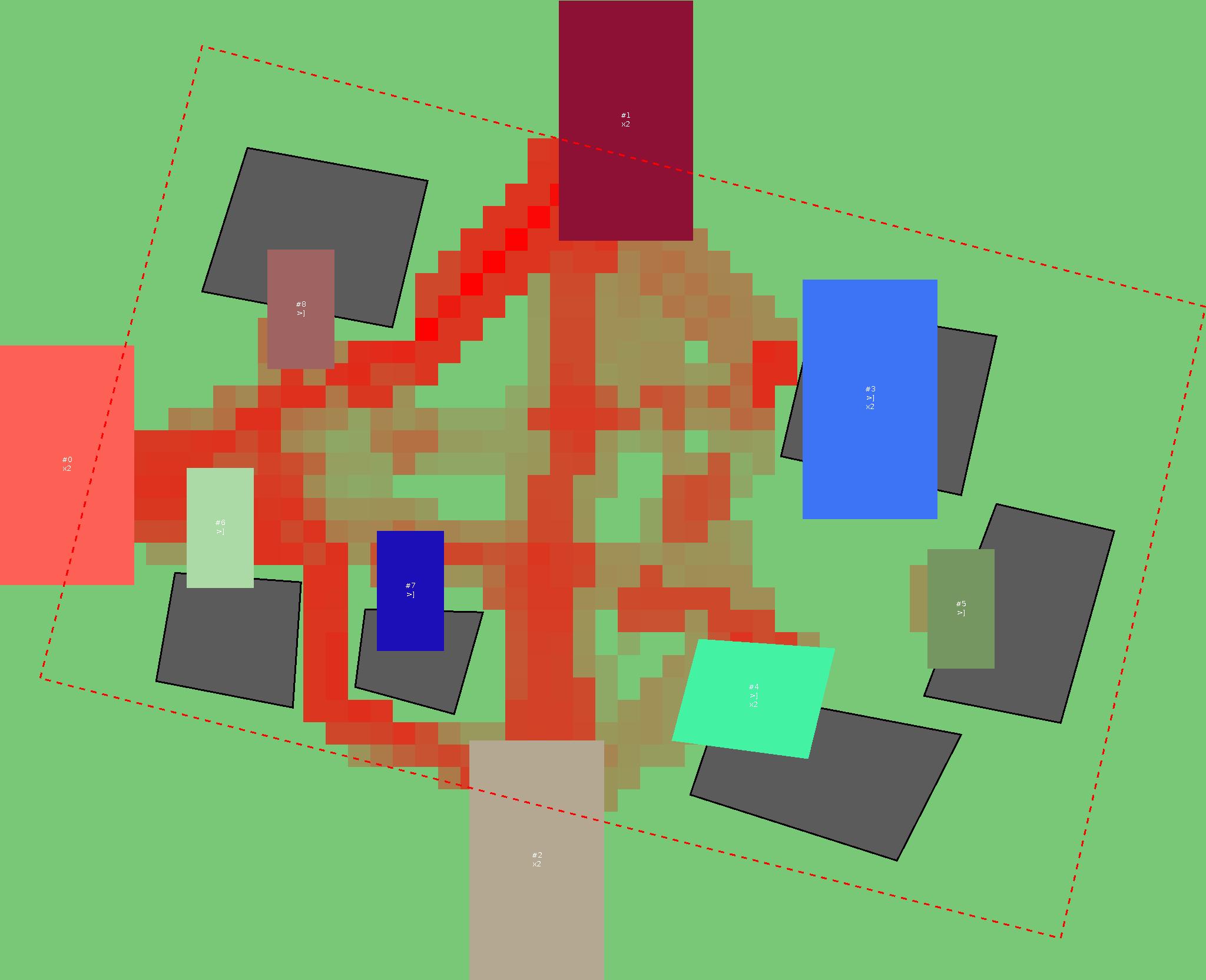 Красным цветом показаны места, где, вероятнее всего, появятся стихийные тропы..
