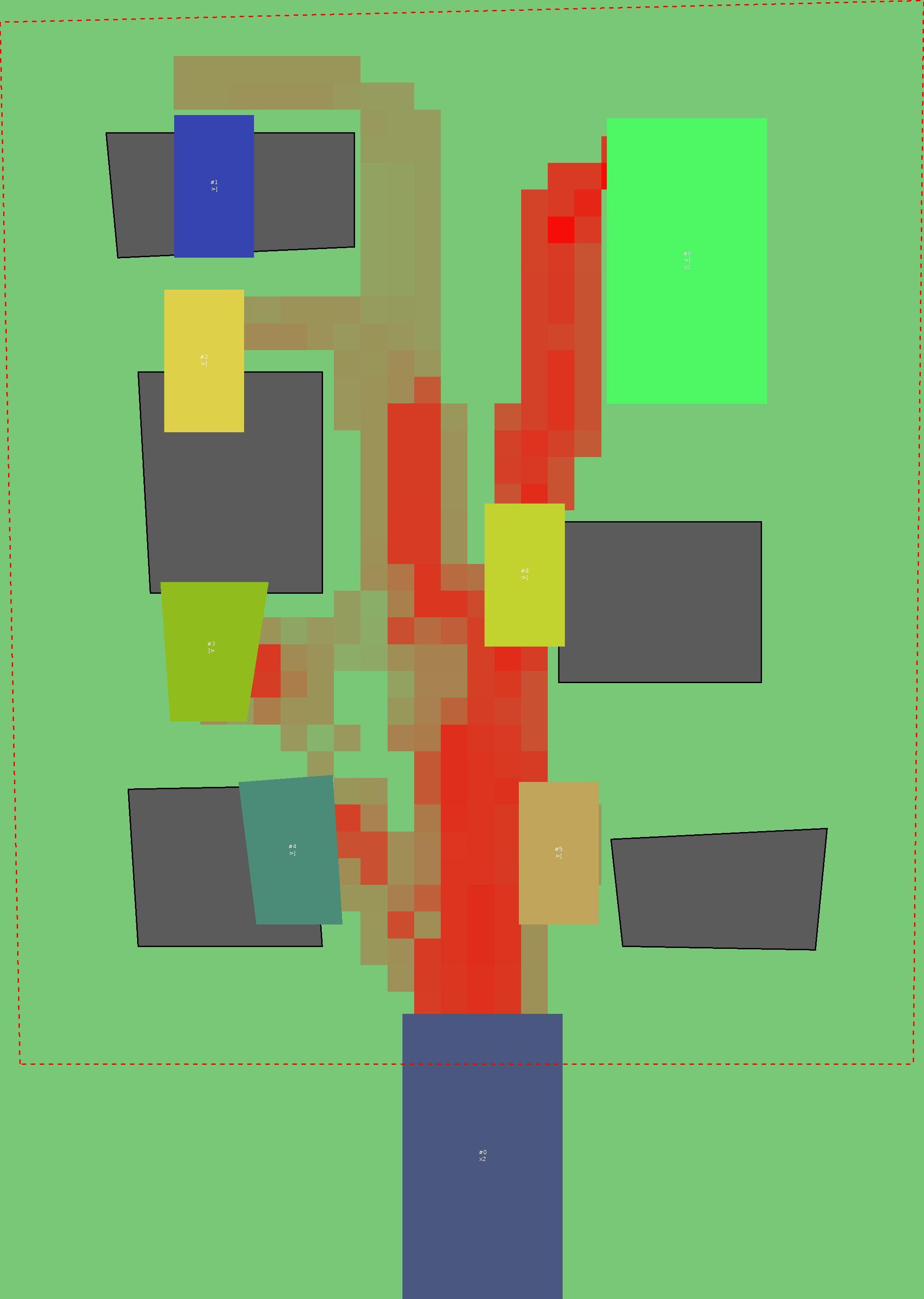 Красным цветом показаны места, где, вероятнее всего, появятся стихийные тропы..