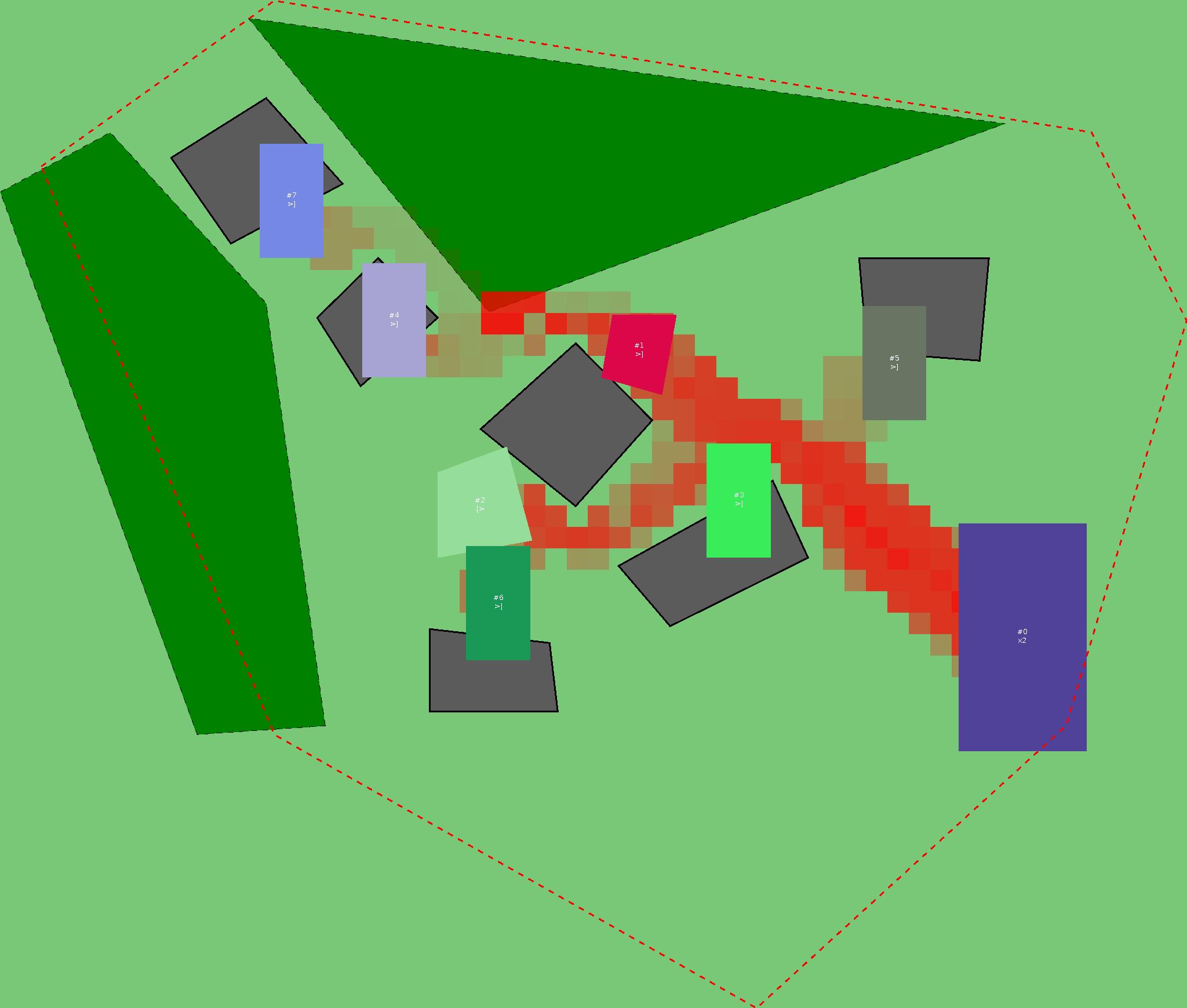 Красным цветом показаны места, где, вероятнее всего, появятся стихийные тропы..