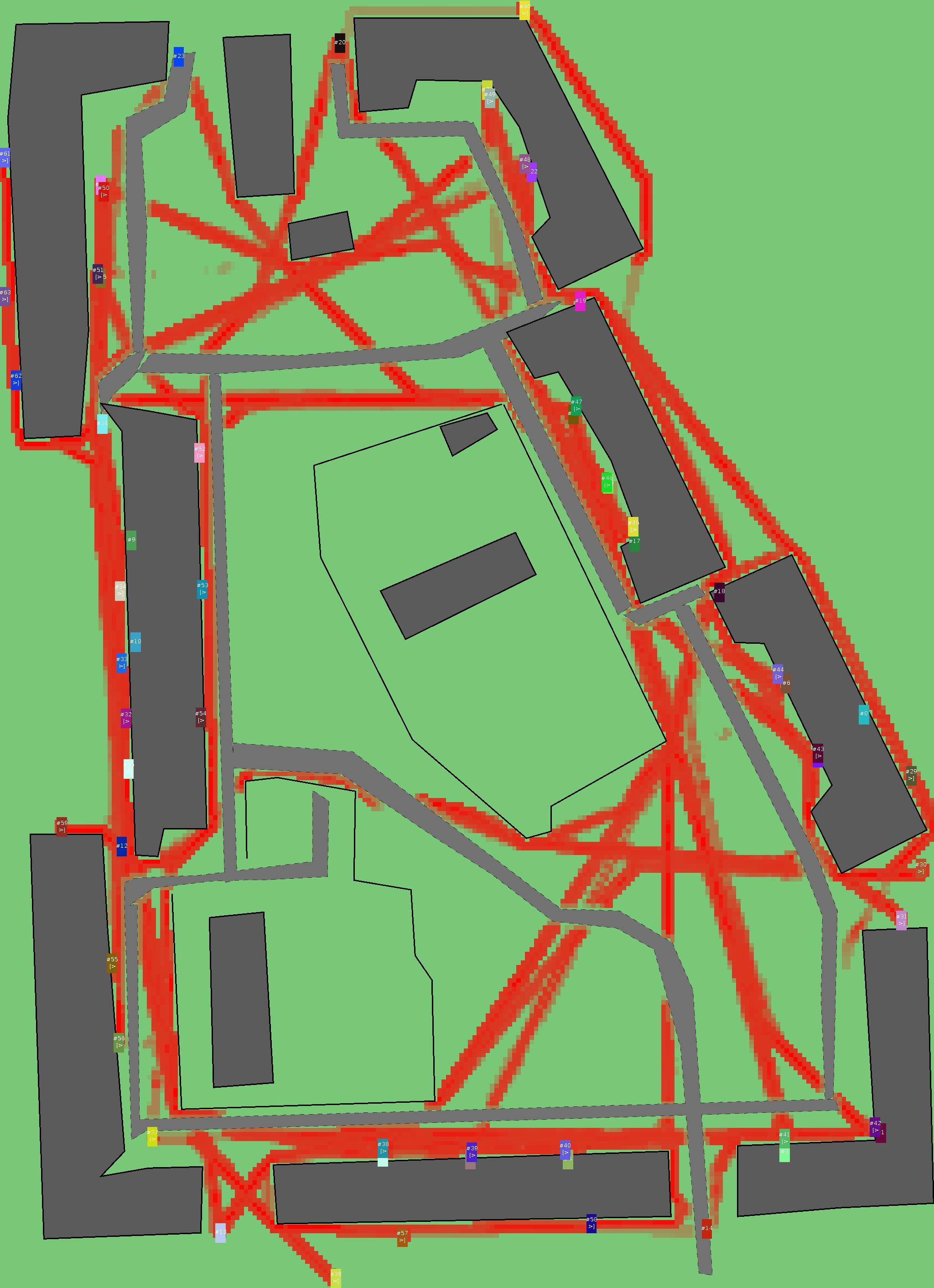 Красным цветом показаны места, где, вероятнее всего, появятся стихийные тропы..
