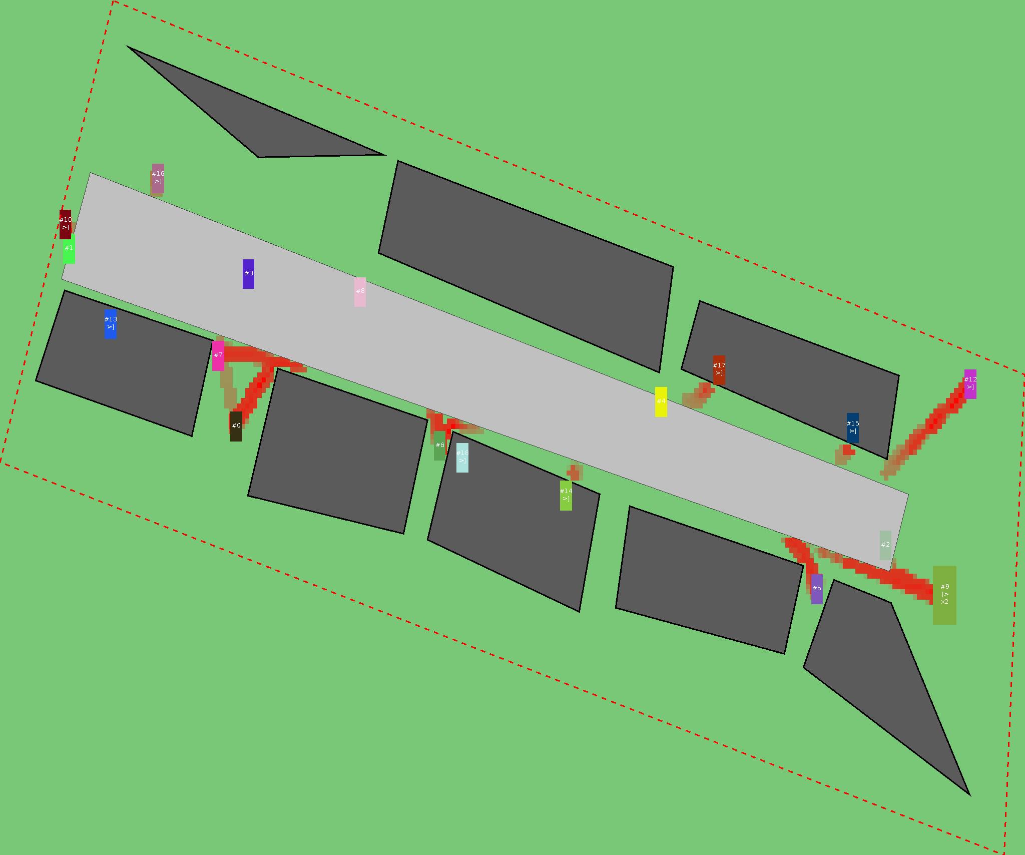 Красным цветом показаны места, где, вероятнее всего, появятся стихийные тропы..
