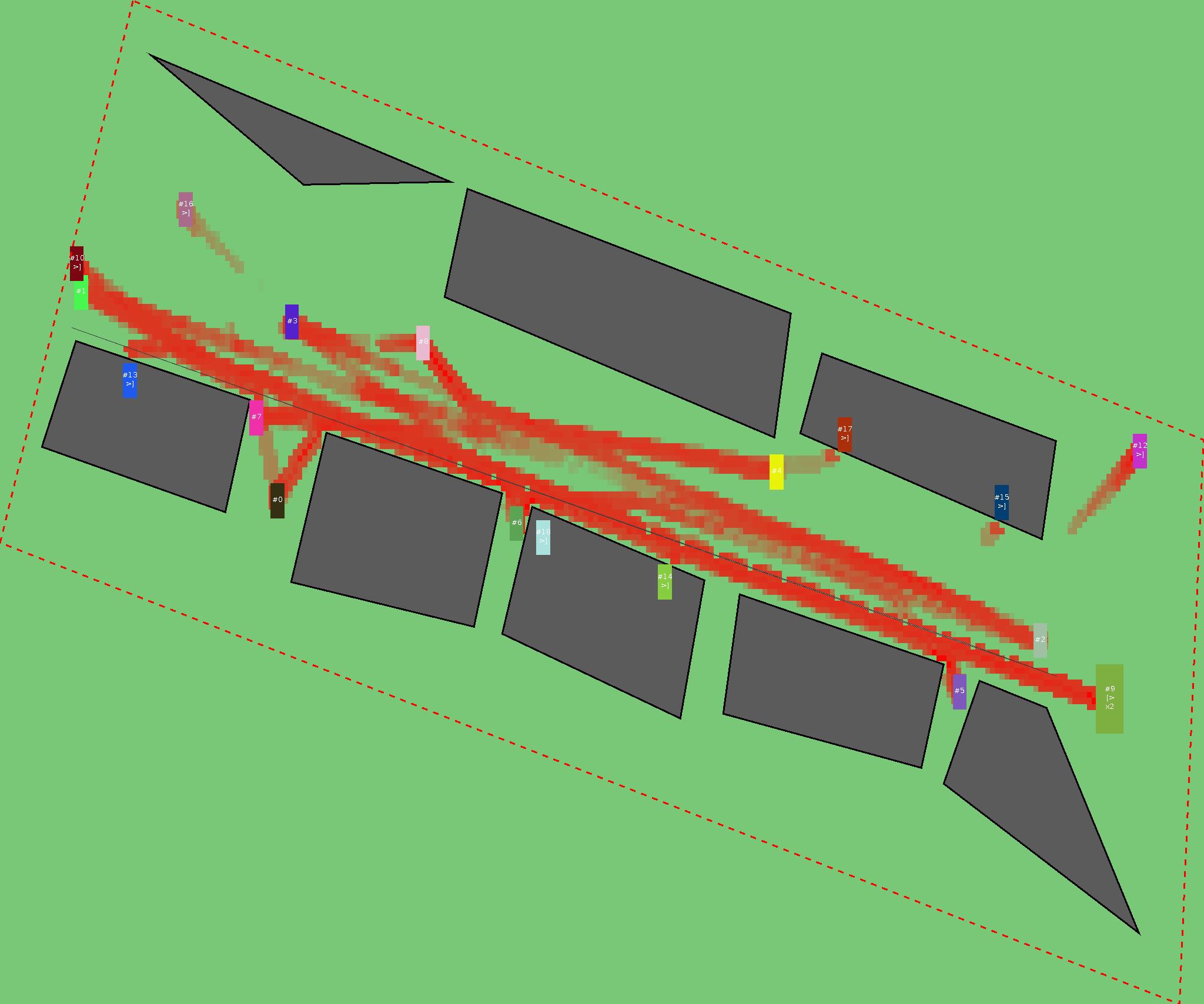 Красным цветом показаны места, где, вероятнее всего, появятся стихийные тропы..
