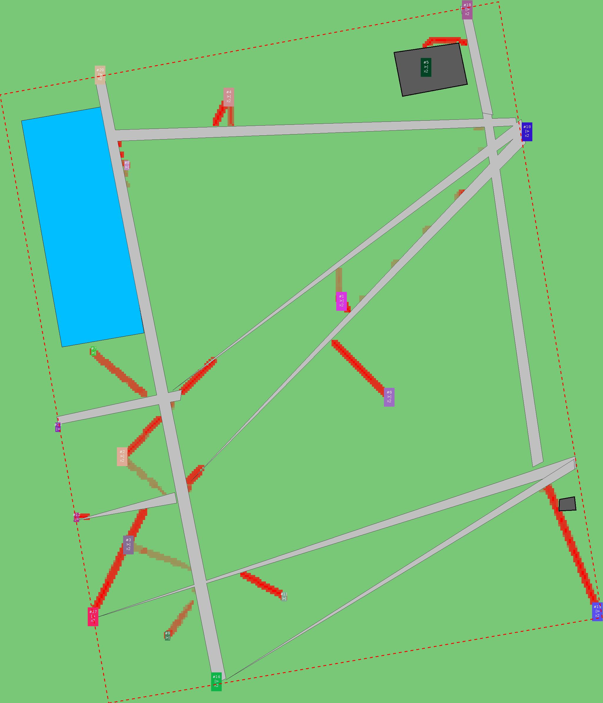 Красным цветом показаны места, где, вероятнее всего, появятся стихийные тропы..