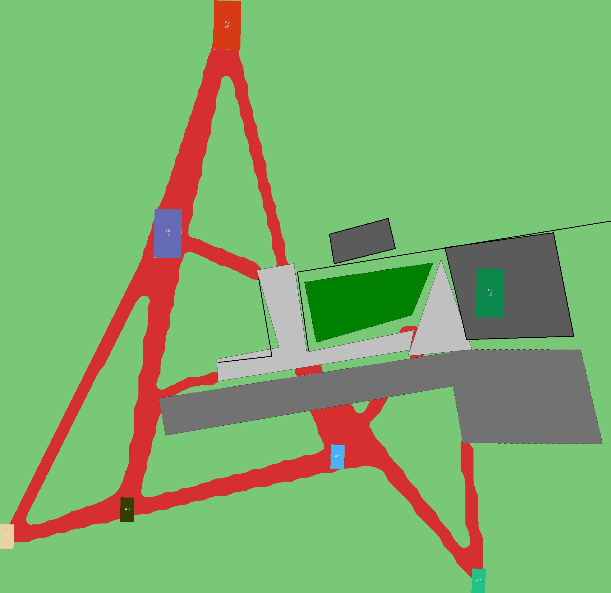 Красным цветом показаны места, где, вероятнее всего, появятся стихийные тропы..