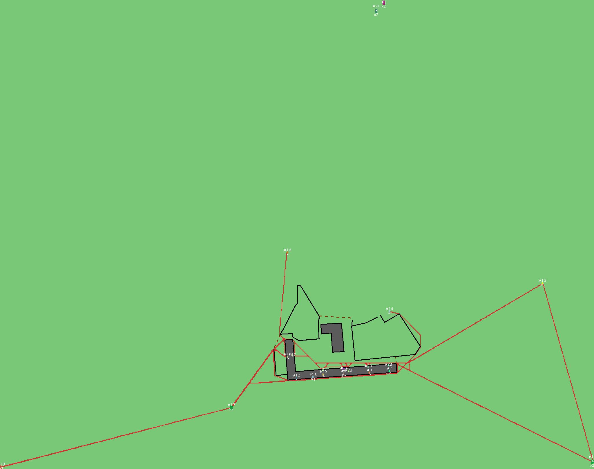 Красным цветом показаны места, где, вероятнее всего, появятся стихийные тропы..