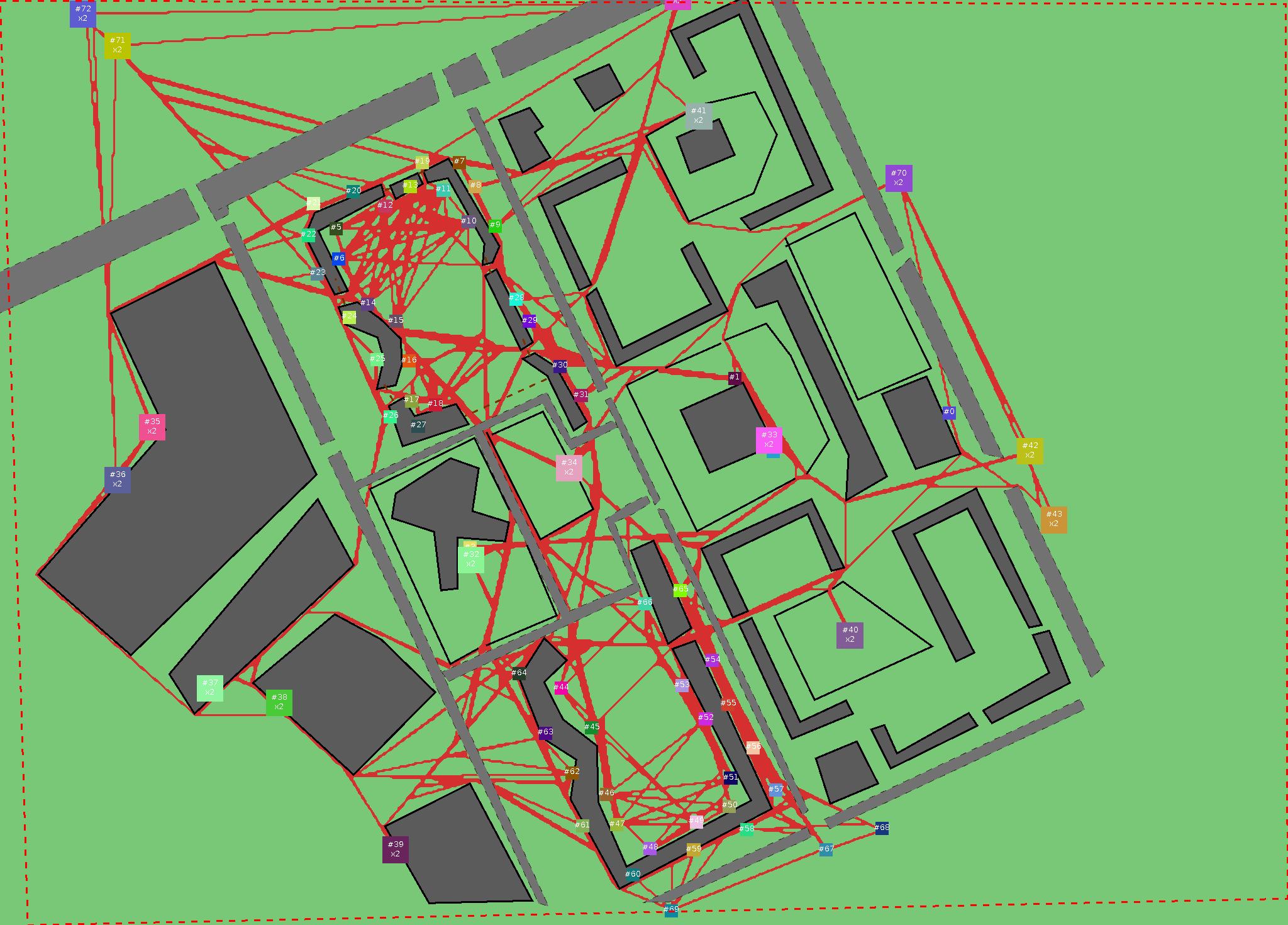 Красным цветом показаны места, где, вероятнее всего, появятся стихийные тропы..