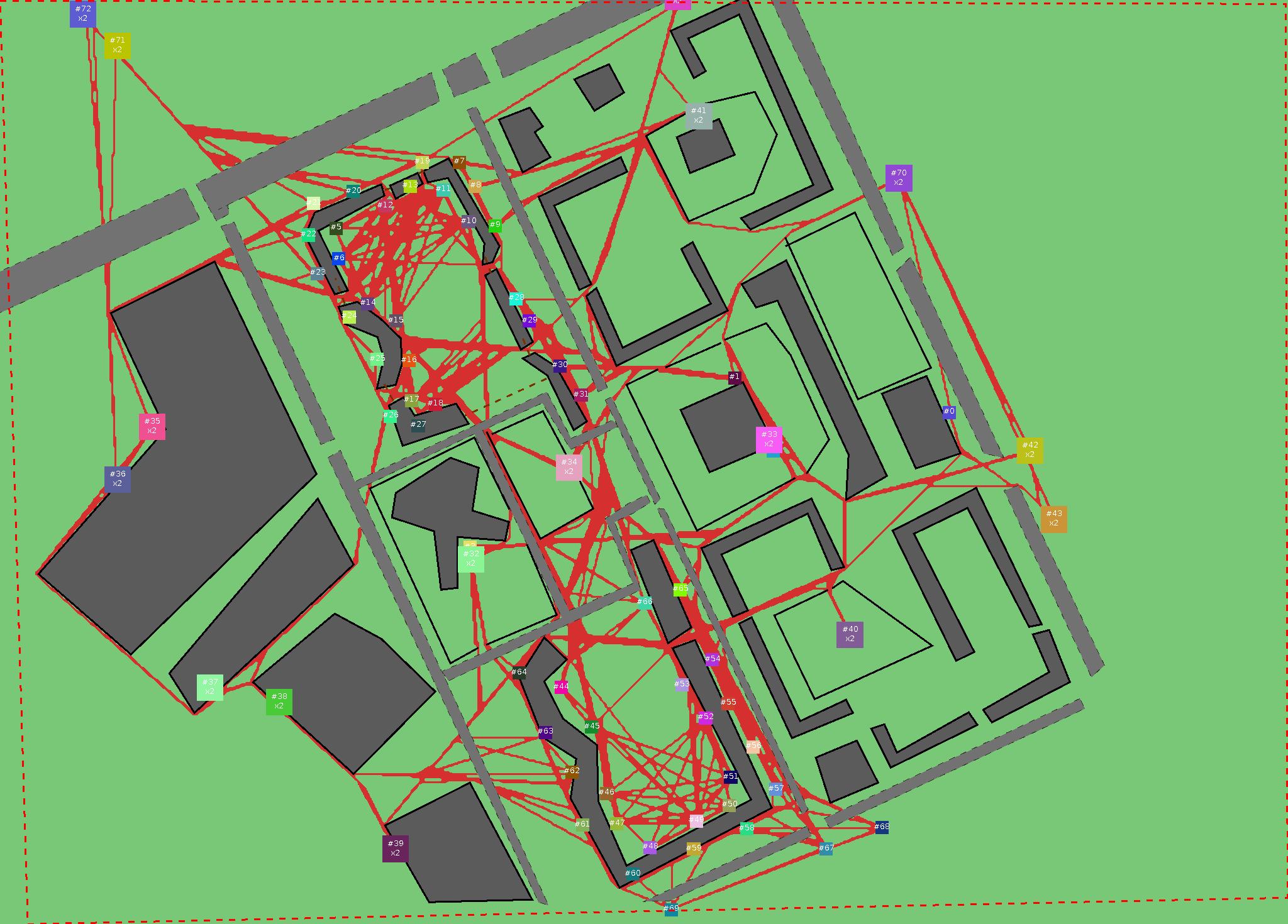 Красным цветом показаны места, где, вероятнее всего, появятся стихийные тропы..
