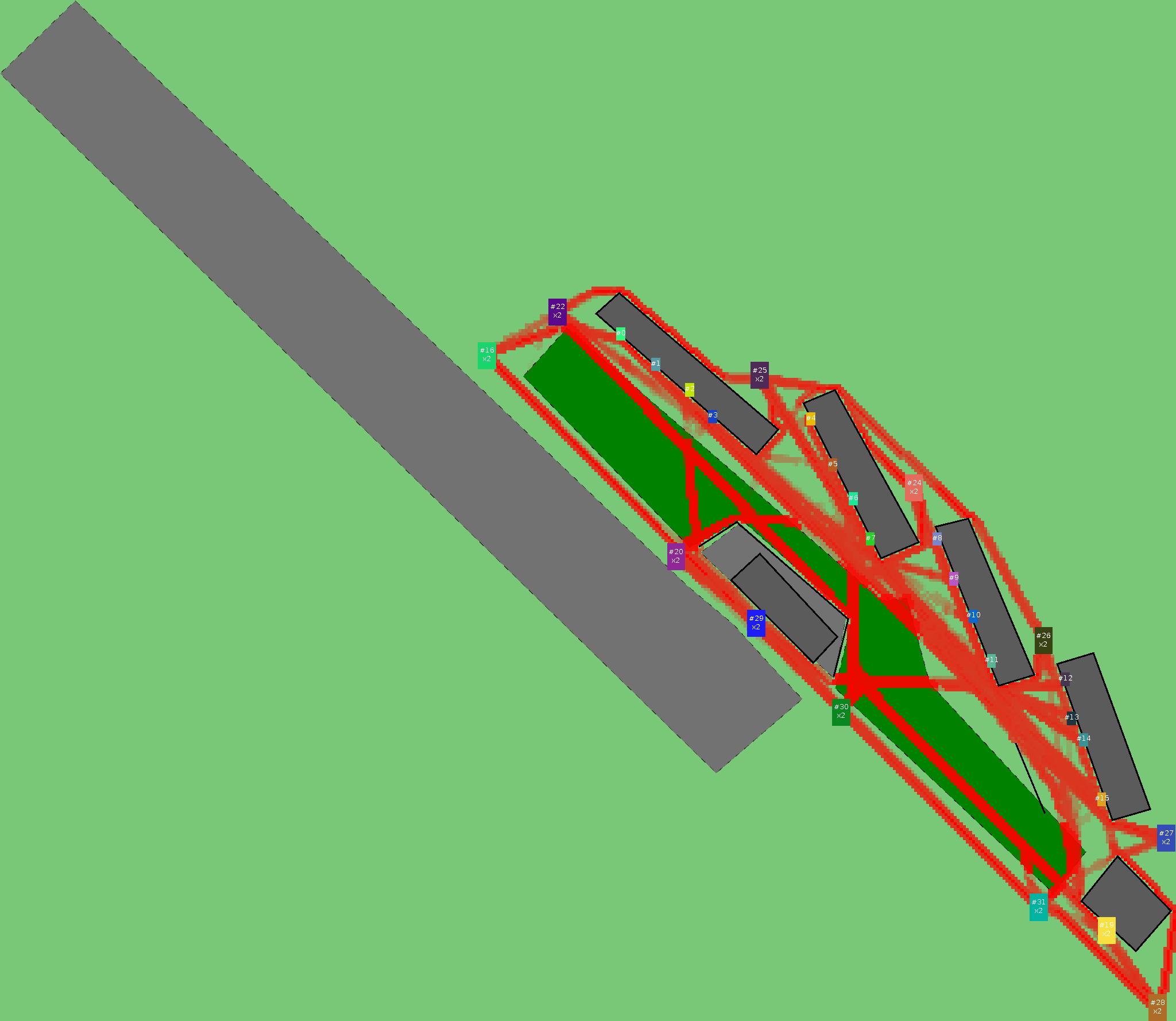 Красным цветом показаны места, где, вероятнее всего, появятся стихийные тропы..