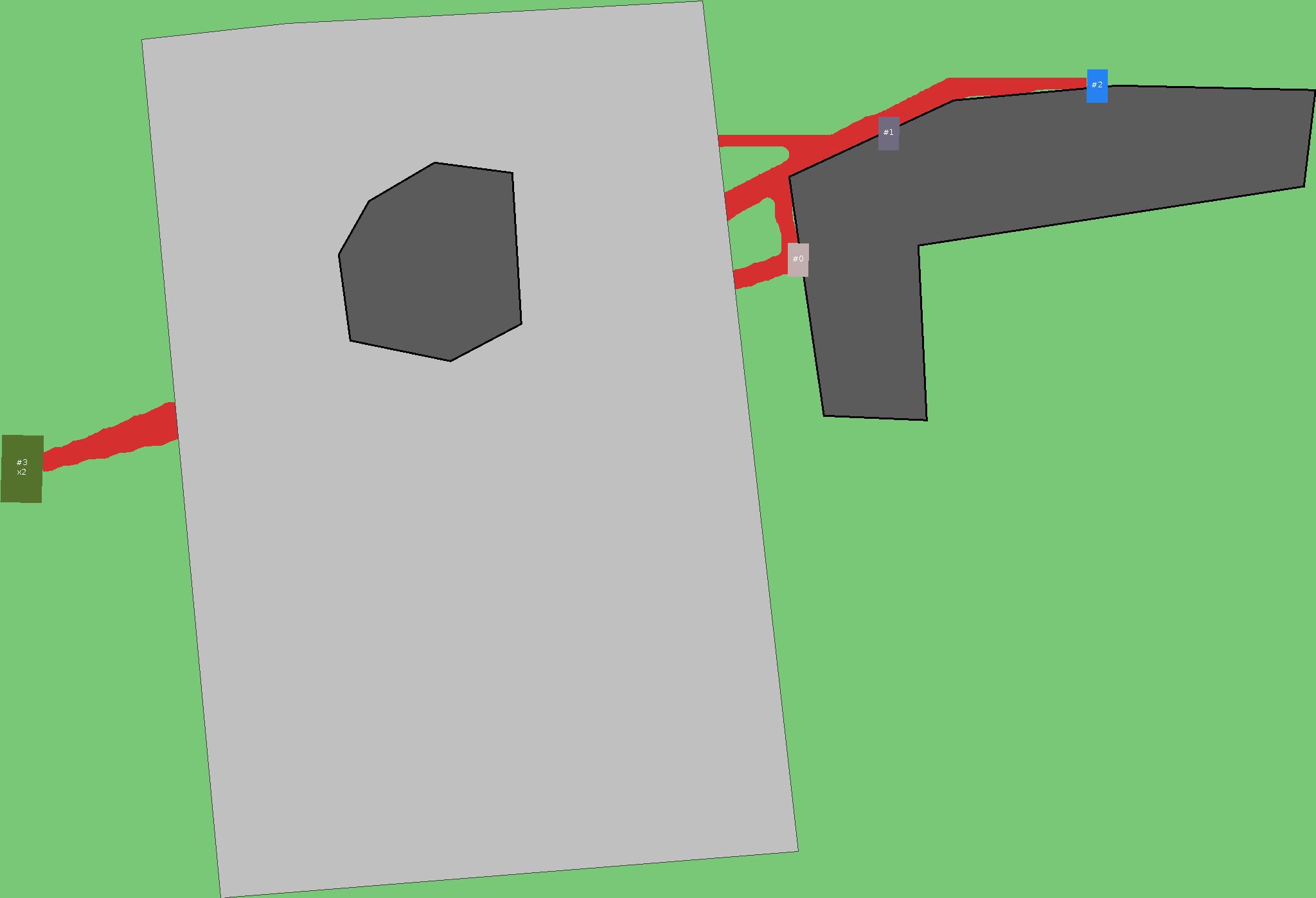 Красным цветом показаны места, где, вероятнее всего, появятся стихийные тропы..