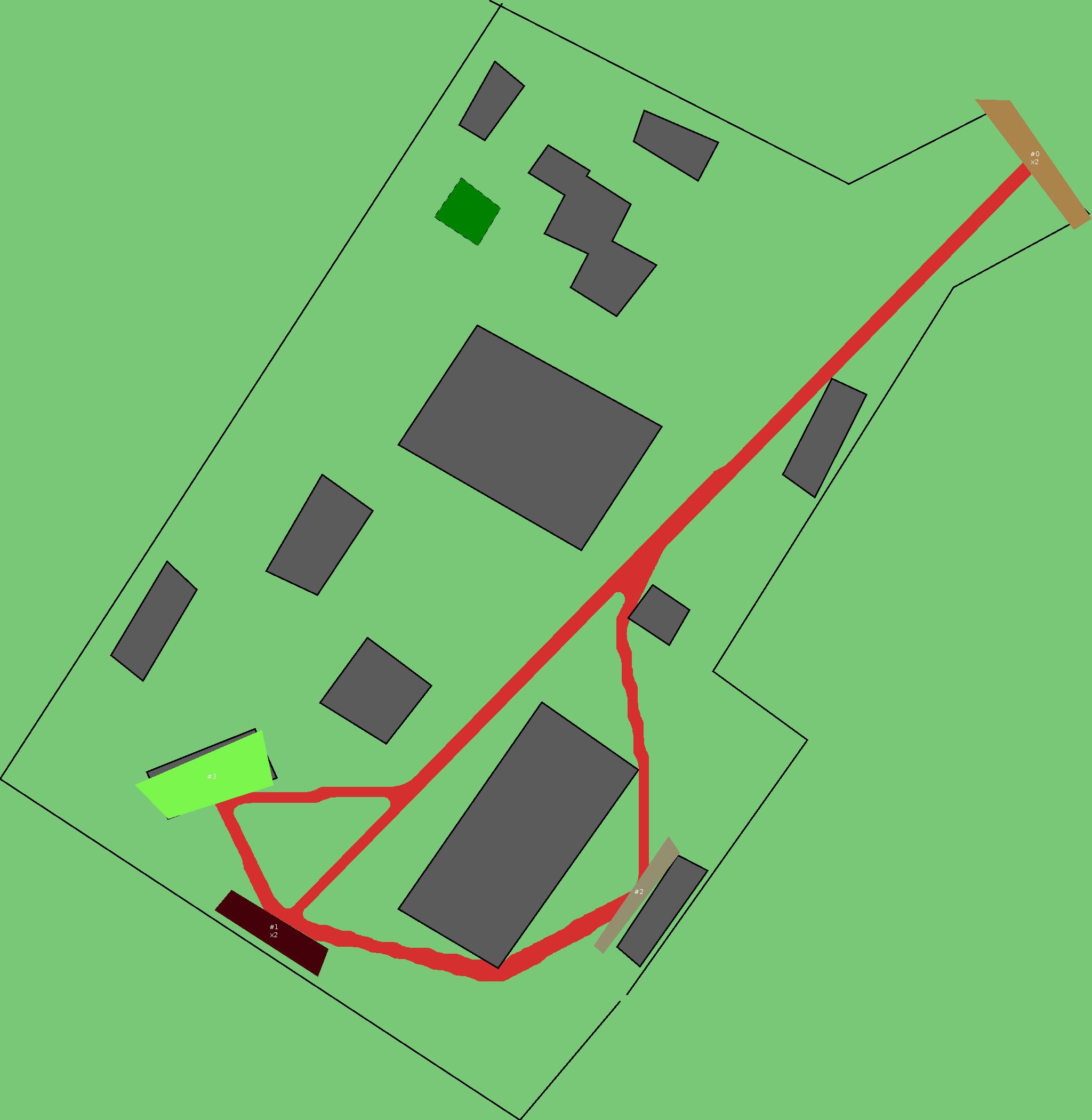 Красным цветом показаны места, где, вероятнее всего, появятся стихийные тропы..