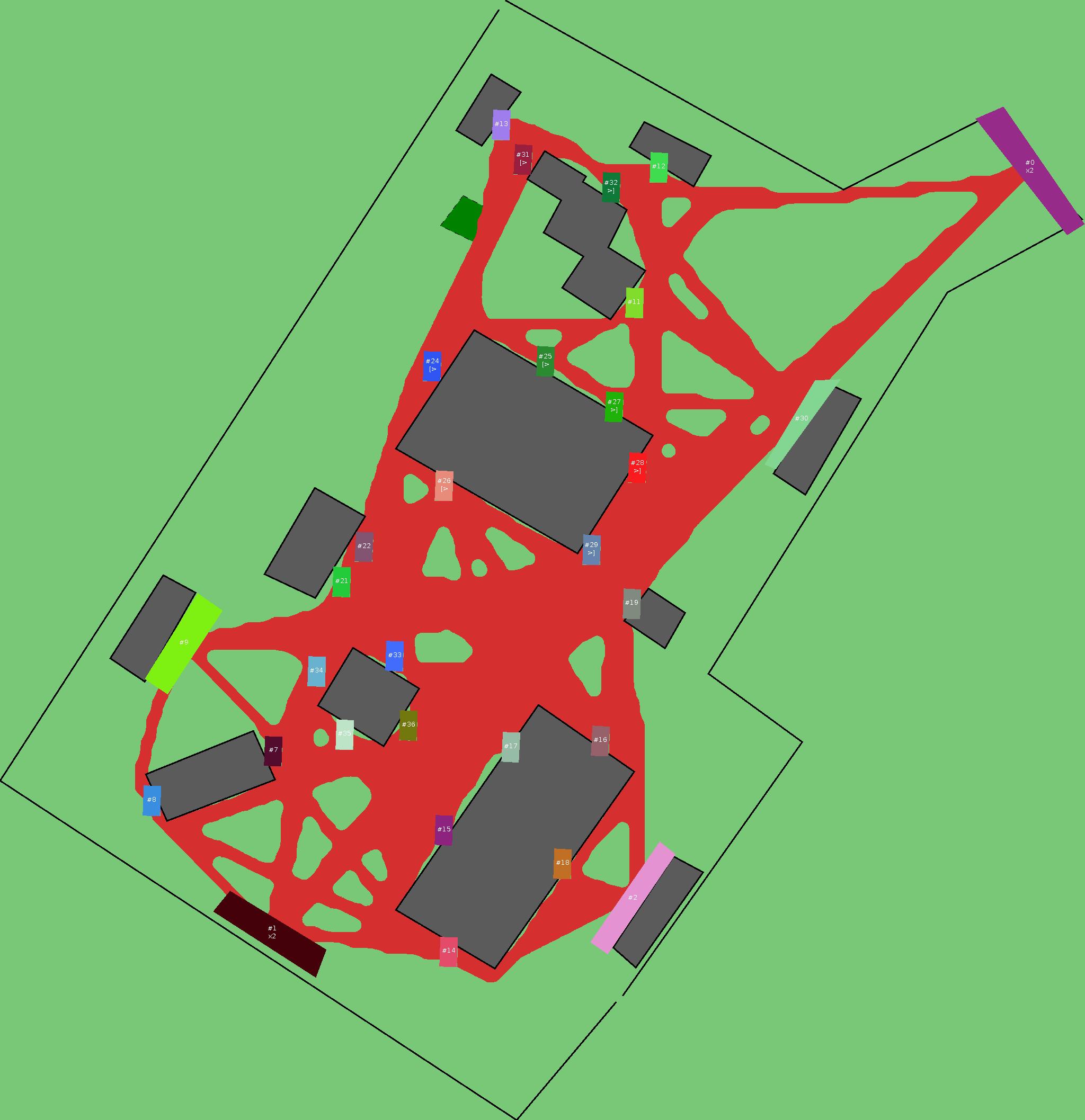 Красным цветом показаны места, где, вероятнее всего, появятся стихийные тропы..