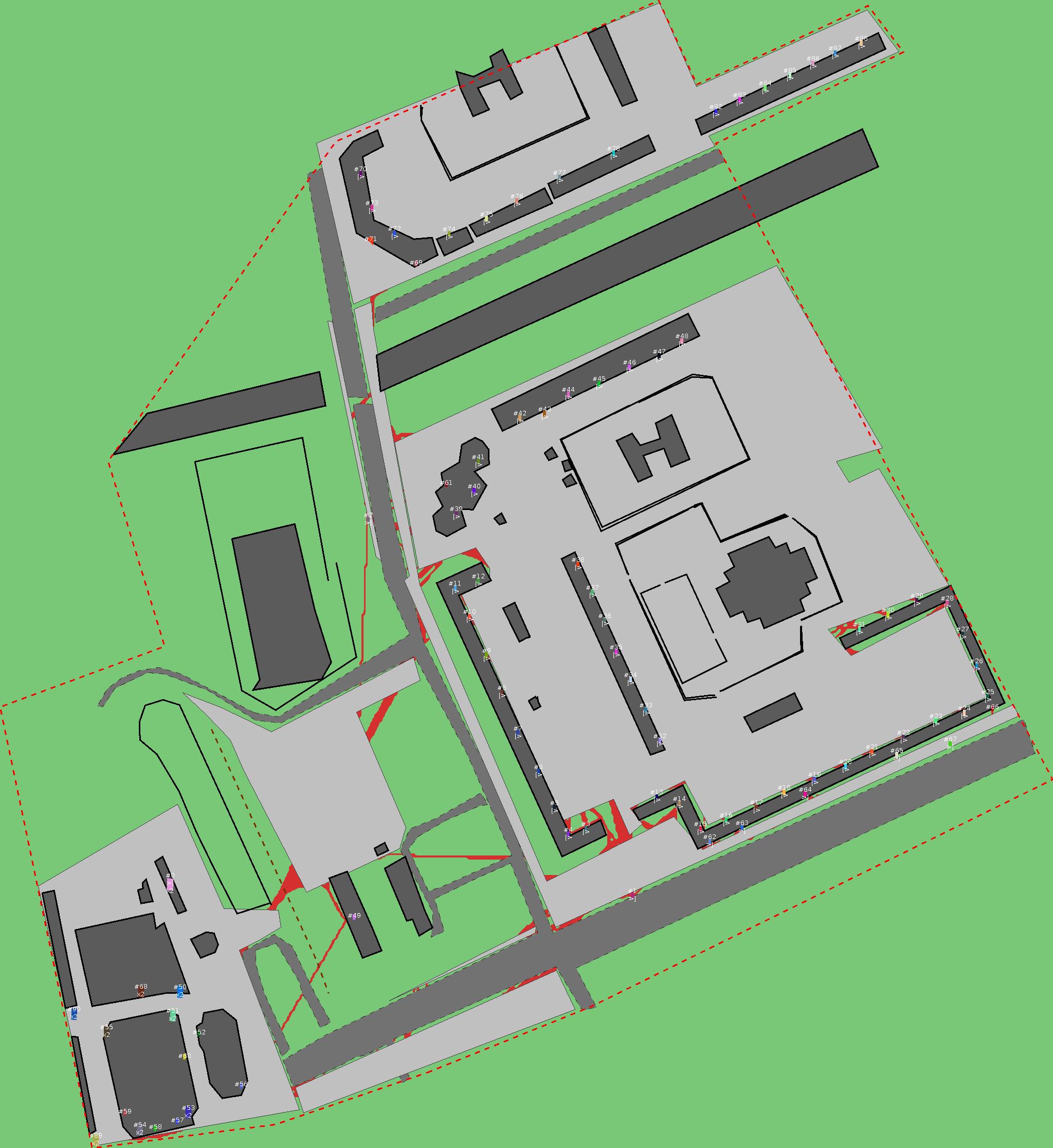Красным цветом показаны места, где, вероятнее всего, появятся стихийные тропы..
