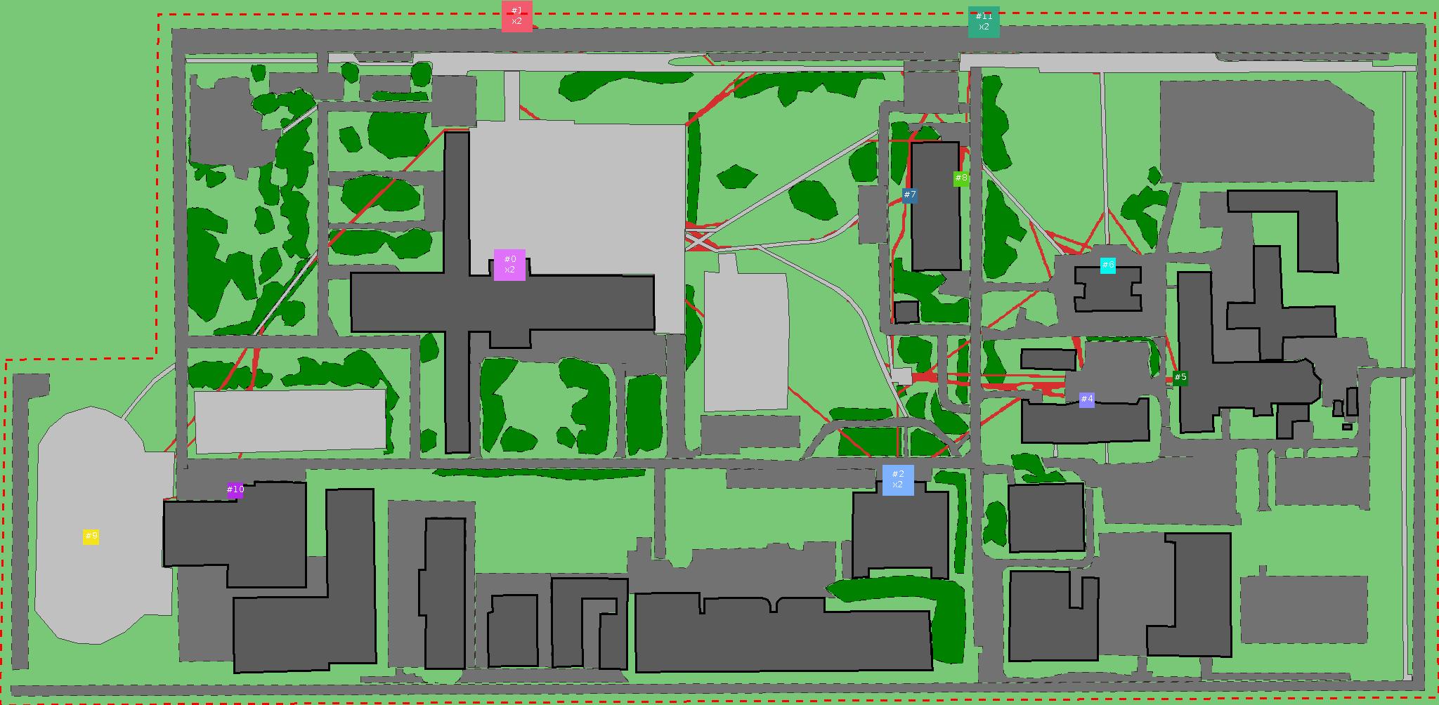 Красным цветом показаны места, где, вероятнее всего, появятся стихийные тропы..