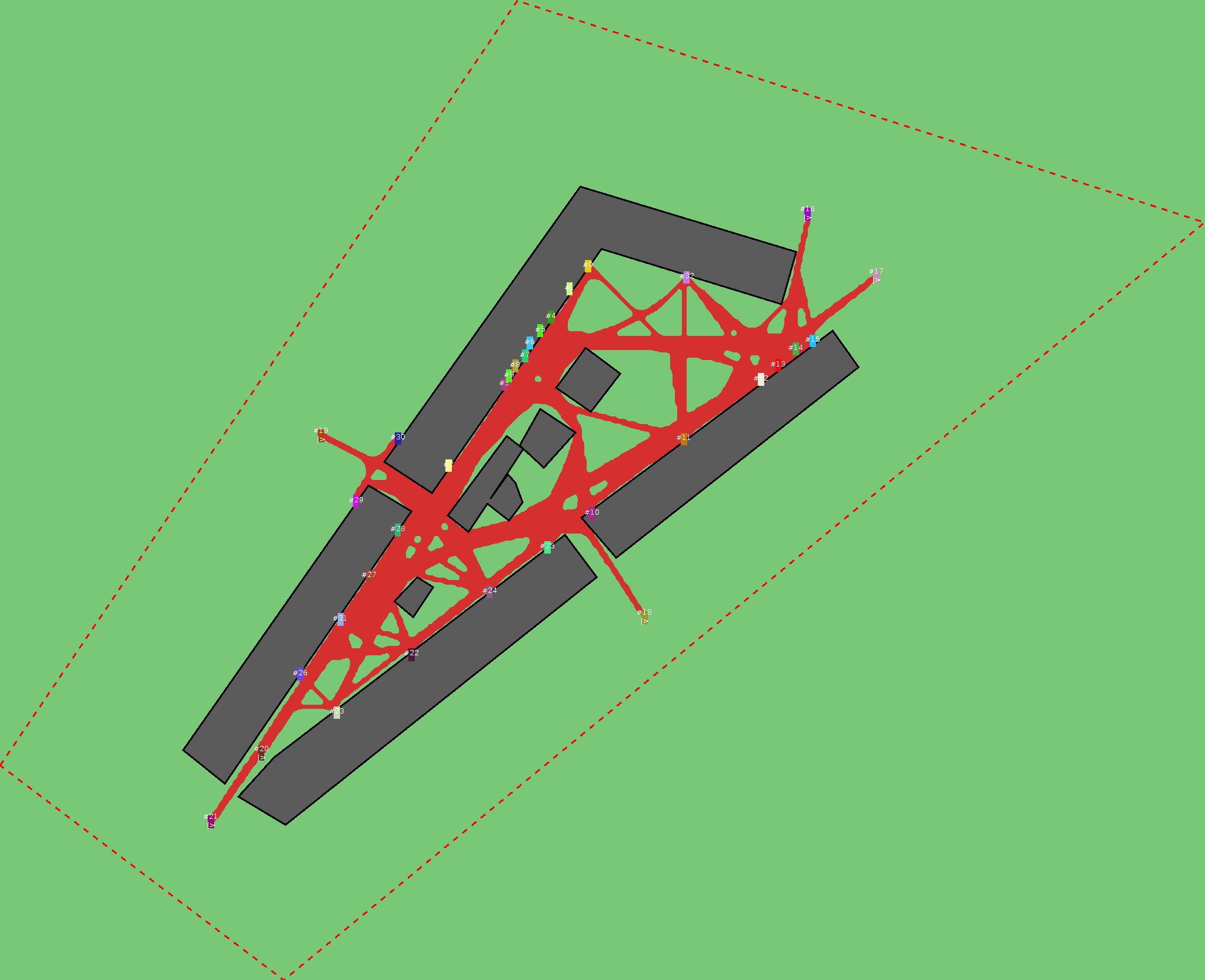 Красным цветом показаны места, где, вероятнее всего, появятся стихийные тропы..