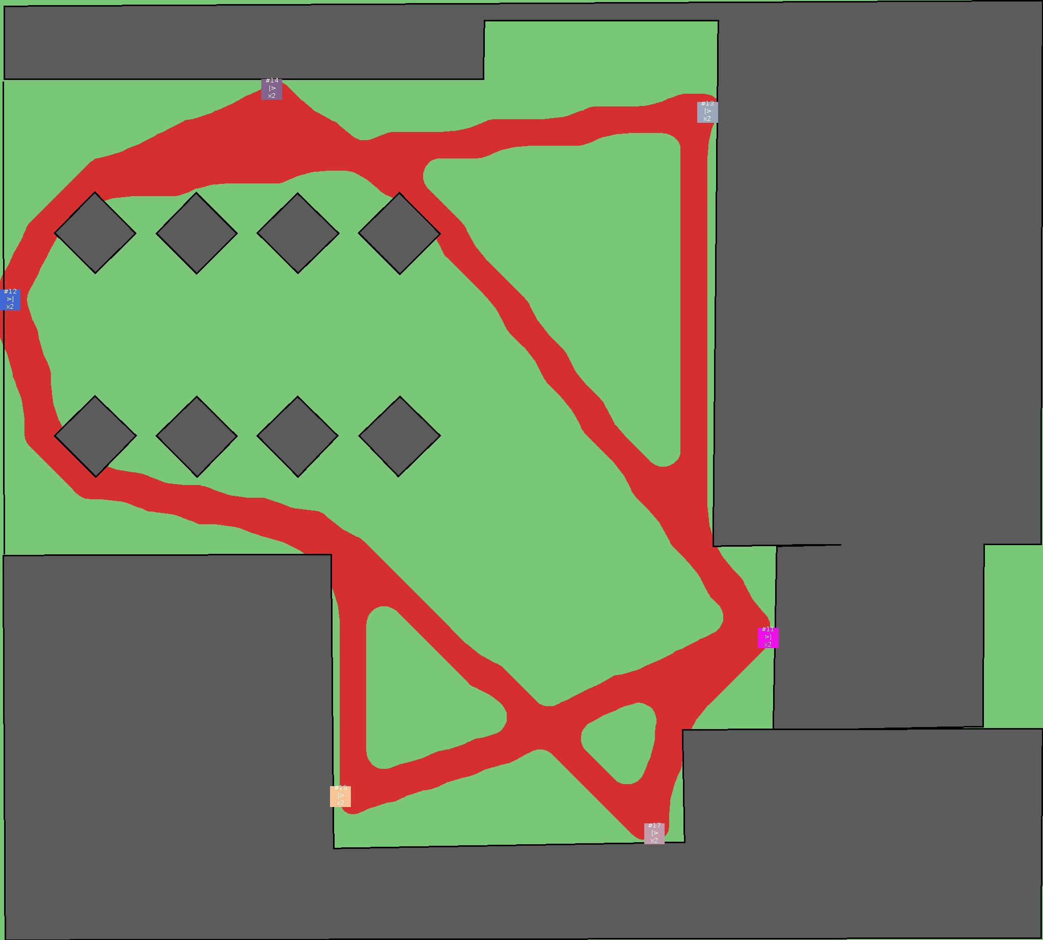 Красным цветом показаны места, где, вероятнее всего, появятся стихийные тропы..