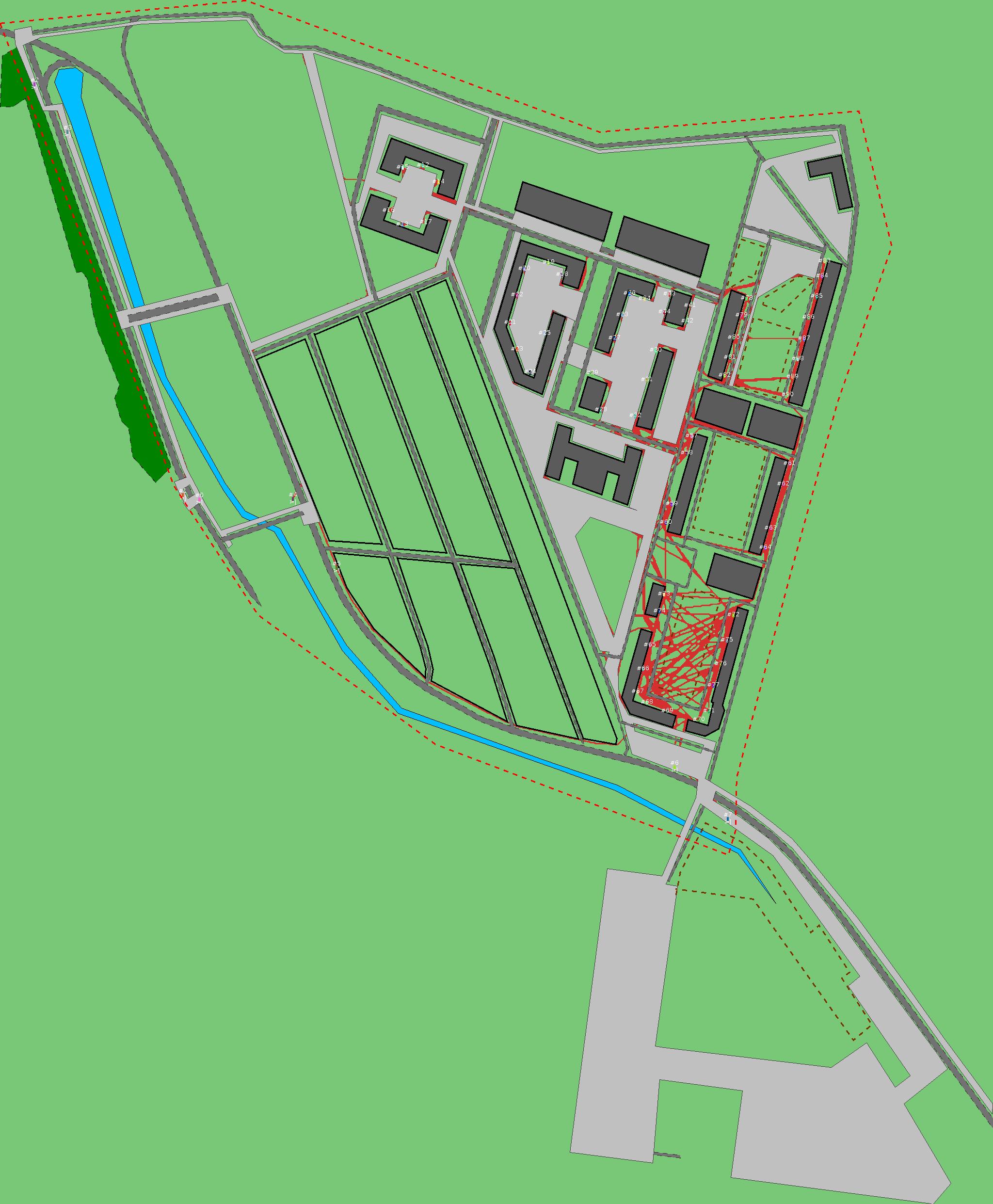 Красным цветом показаны места, где, вероятнее всего, появятся стихийные тропы..