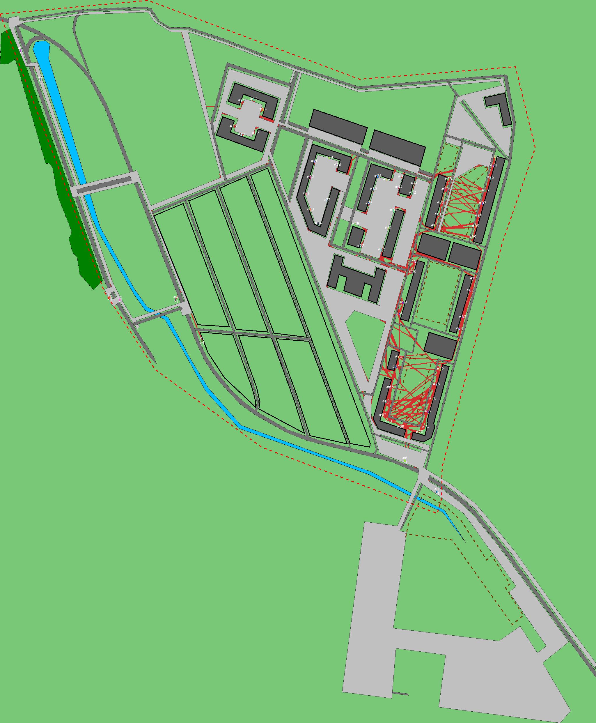 Красным цветом показаны места, где, вероятнее всего, появятся стихийные тропы..