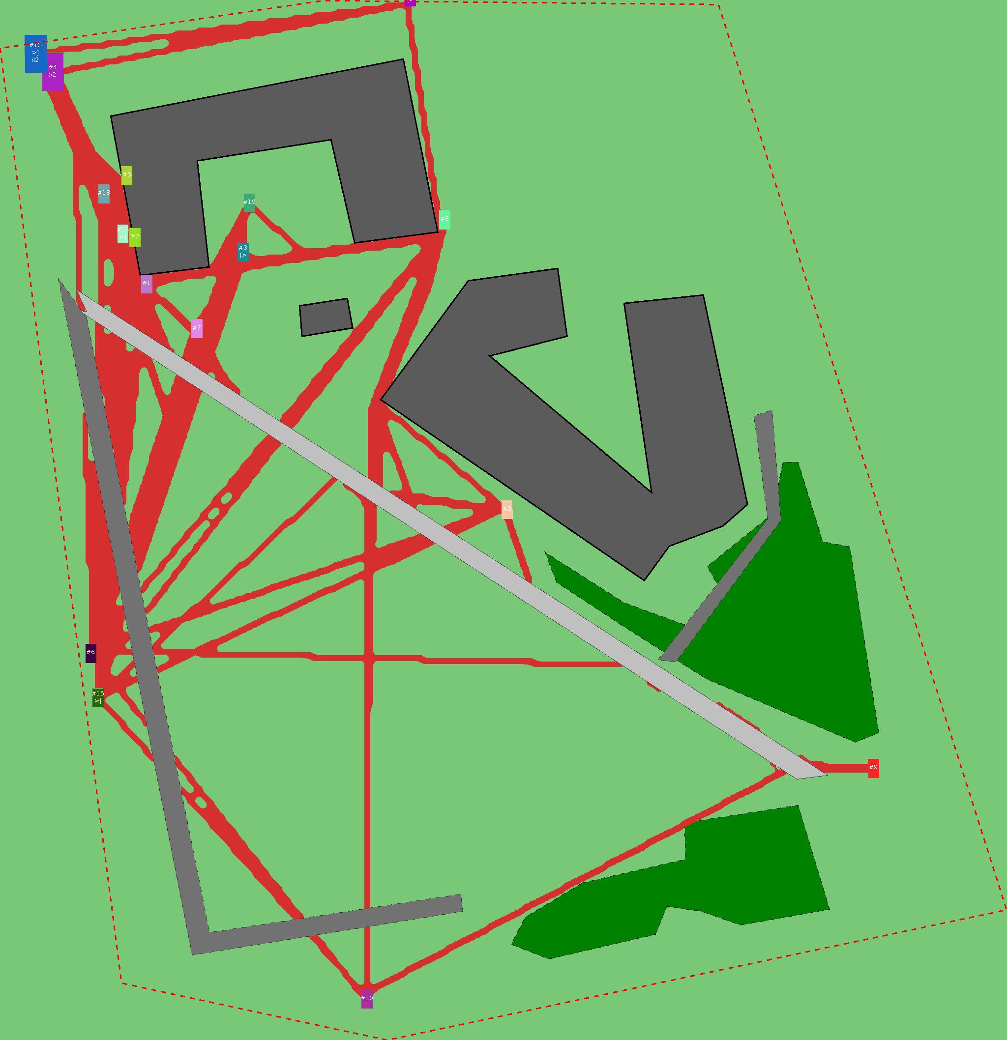 Красным цветом показаны места, где, вероятнее всего, появятся стихийные тропы..